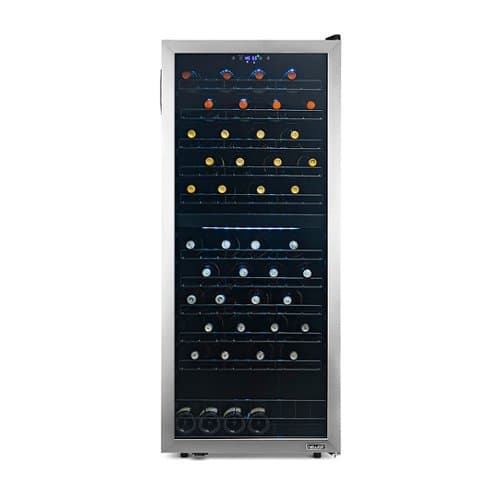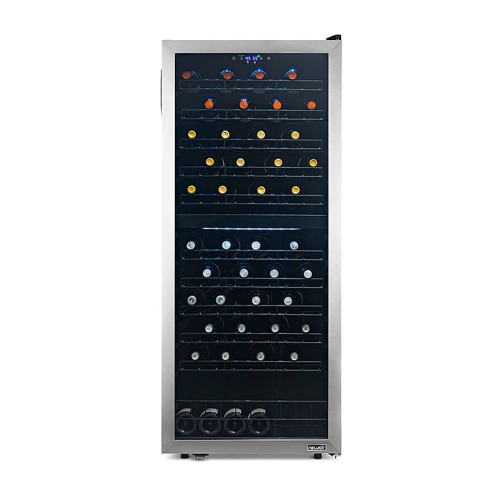 Collectors and connoisseurs, rejoice! The stylish NewAir 98 Bottle Dual Zone Wine Fridge is the trophy case you've been waiting for to show off all of your favorite vintages. The extra-large capacity has room for everyday bottles and special-occasion champagne, with plenty of extra slots to fill with new favorites. Low-vibration ultra-quiet inverter compressor cooling technology and precision digital controls let you create ideal conditions for long-term storage and aging. Dual temperature zones keep both reds and whites at the perfect serving temperature, so you get optimal enjoyment out of every bottle.