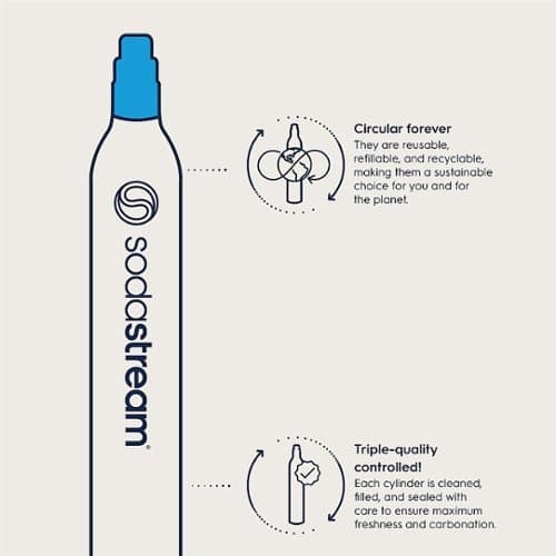 Empty Trade-In Carbonator Required upon Store Pickup Secure an extra carbonator for your SodaStream sparkling water maker with the SodaStream 60L exchange carbonator. Just one full bottle can carbonate up to 60L of water. The SodaStream 60L exchange carbonator is compatible with all SodaStream sparkling water maker units. Your empty carbonator must be brought to the store during pickup to be exchanged.