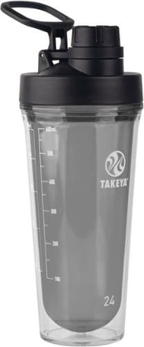 Enjoying a shake on the go just got easier with this ultra-functional Takeya Tritan 24-oz. Protein Shaker. BPA-free double-wall Eastman Tritan material doesn't transfer flavor. This Tritan Protein Shaker includes a patented nylon agitator to perfectly blend protein powder, and convenient measurement markings allow you to get the mix just right. The universal extra-wide opening makes for easy filling, while the rounded internal bottom is designed to prevent powder trapping in crevices for hassle-free cleaning.