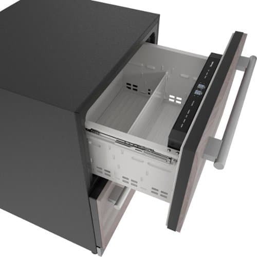 The Thermador Under Counter Double Drawer Refrigerator provides more room for anything that needs cooling from beverages and snacks to coffee supplies or cosmetics. Offering customizable cooling modes like quick chill to cool items faster and SoftClose drawers for the smoothest close every time. Choose from Professional or Masterpiece stainless steel options or design your own custom panel, this innovative collection extends the range of design possibilities inside the kitchen and out. The Freedom Thermador Under Counter Refrigeration Collection boasts a versatile array of refrigeration, freezer and wine options.