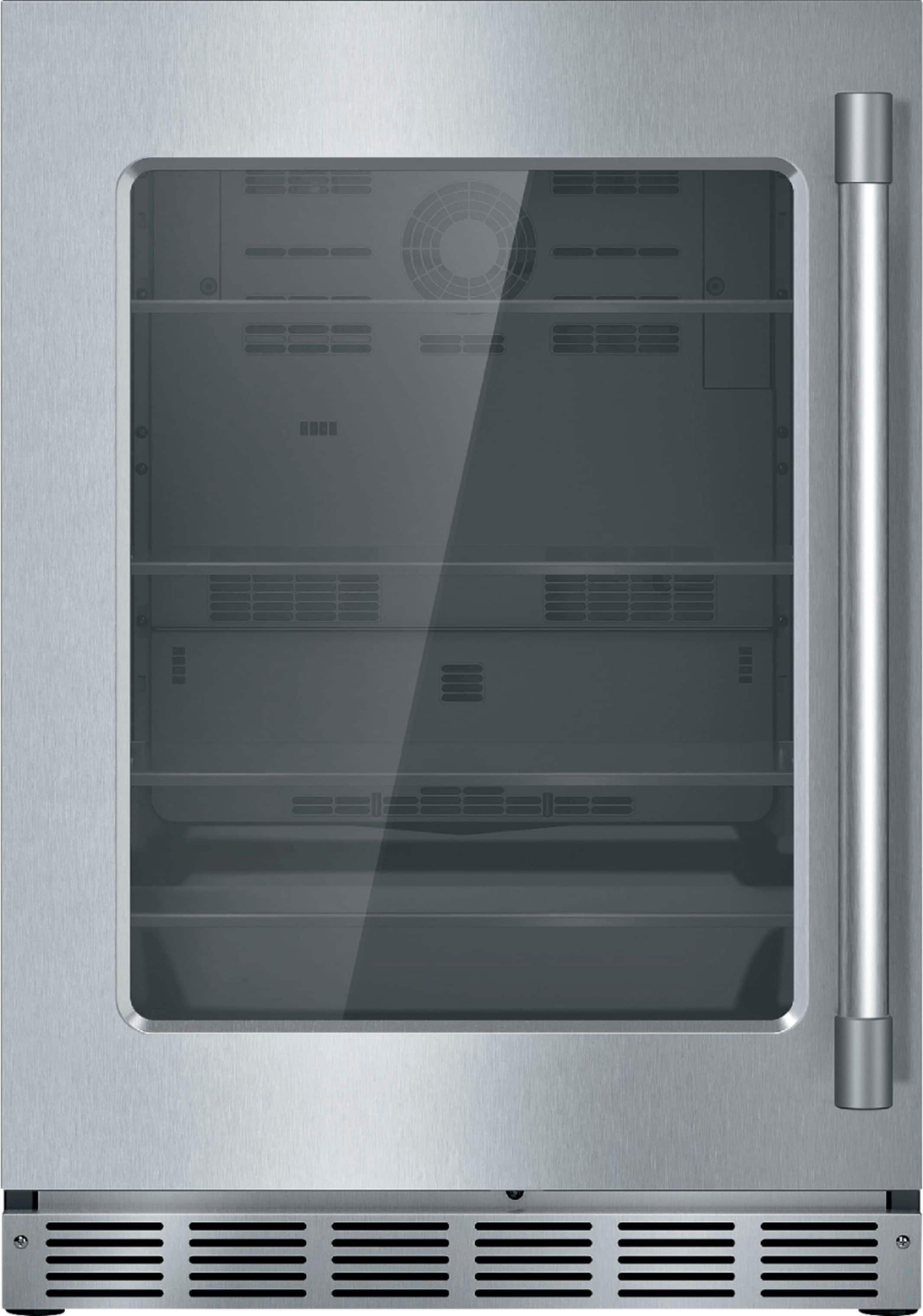 The Thermador Under Counter Glass Door Refrigerator features preset cooling modes including refrigeration, bar mode and quick chill mode. With tempered adjustable glass shelves for maximum flexibility, and SoftClose doors providing you an ultra-smooth close every time. Choose from Professional or Masterpiece stainless steel options or design your own custom panel, this innovative collection extends the range of design possibilities inside the kitchen and out. The Freedom Thermador Under Counter Refrigeration Collection boasts a versatile array of refrigeration, freezer and wine options.