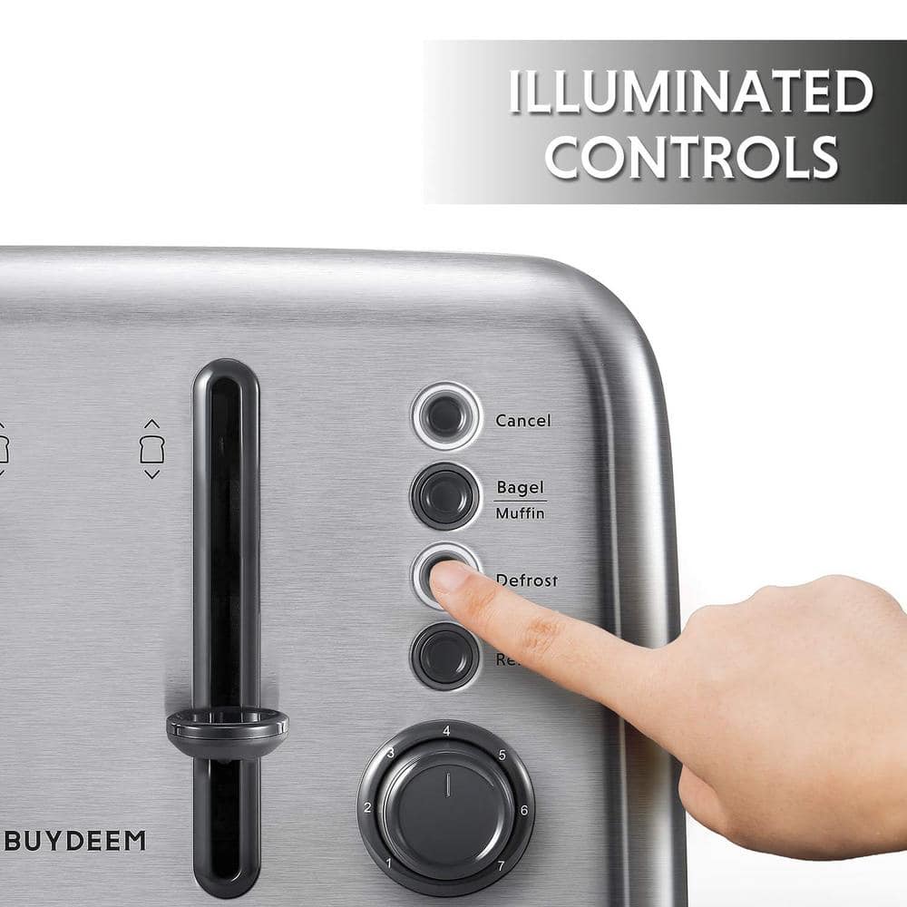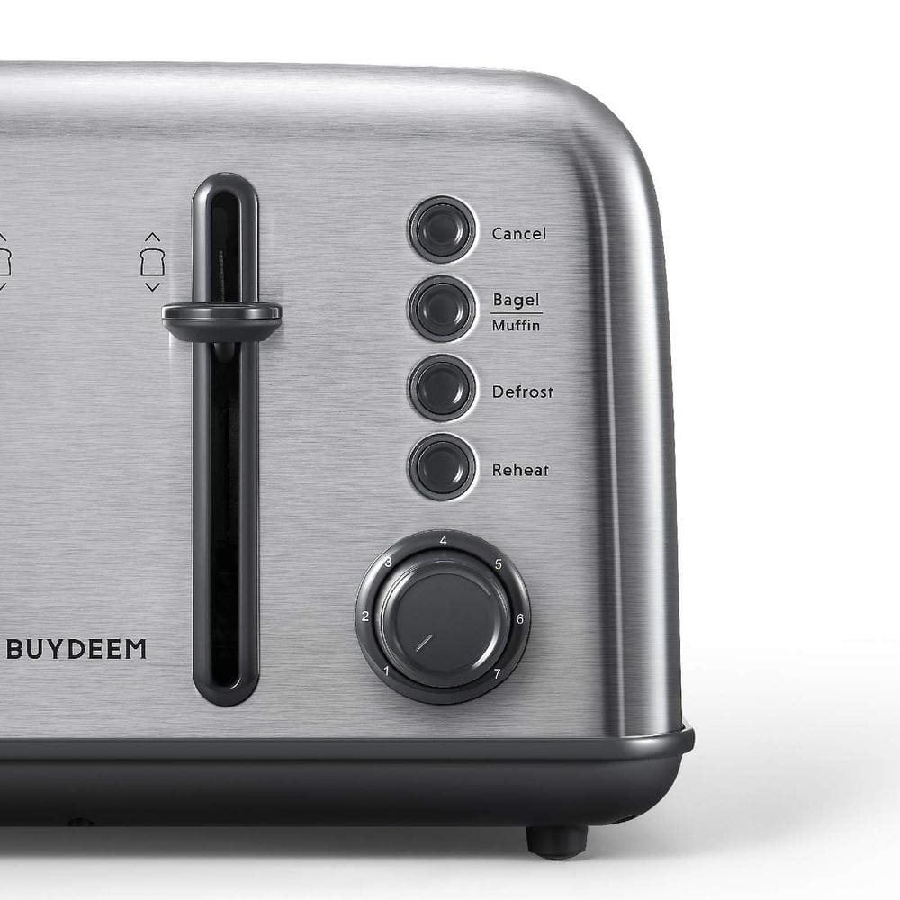 BUYDEEM 4-Slice Toaster, Extra Wide Slots, Retro Stainless Steel with High Lift Lever, Removal Crumb Tray, 7-Shade Settings