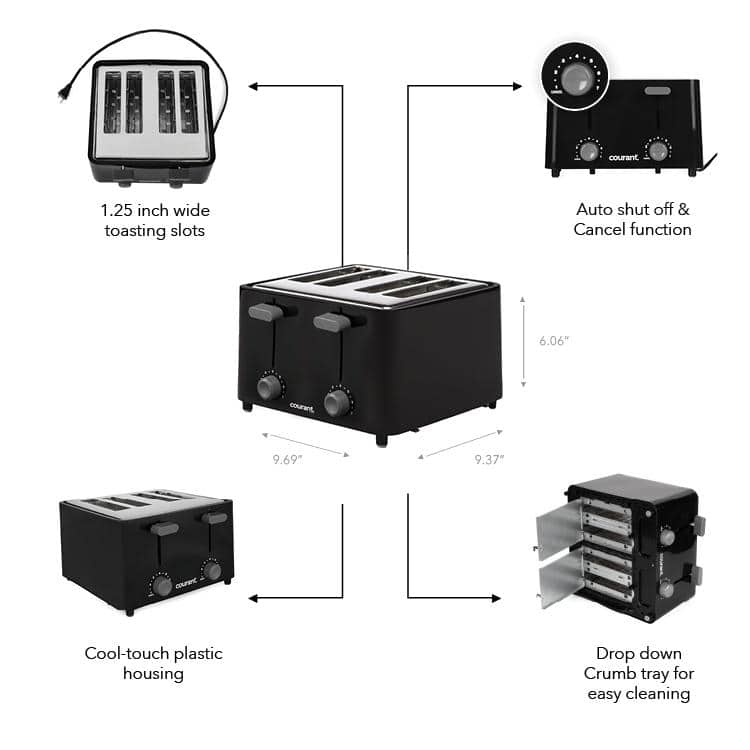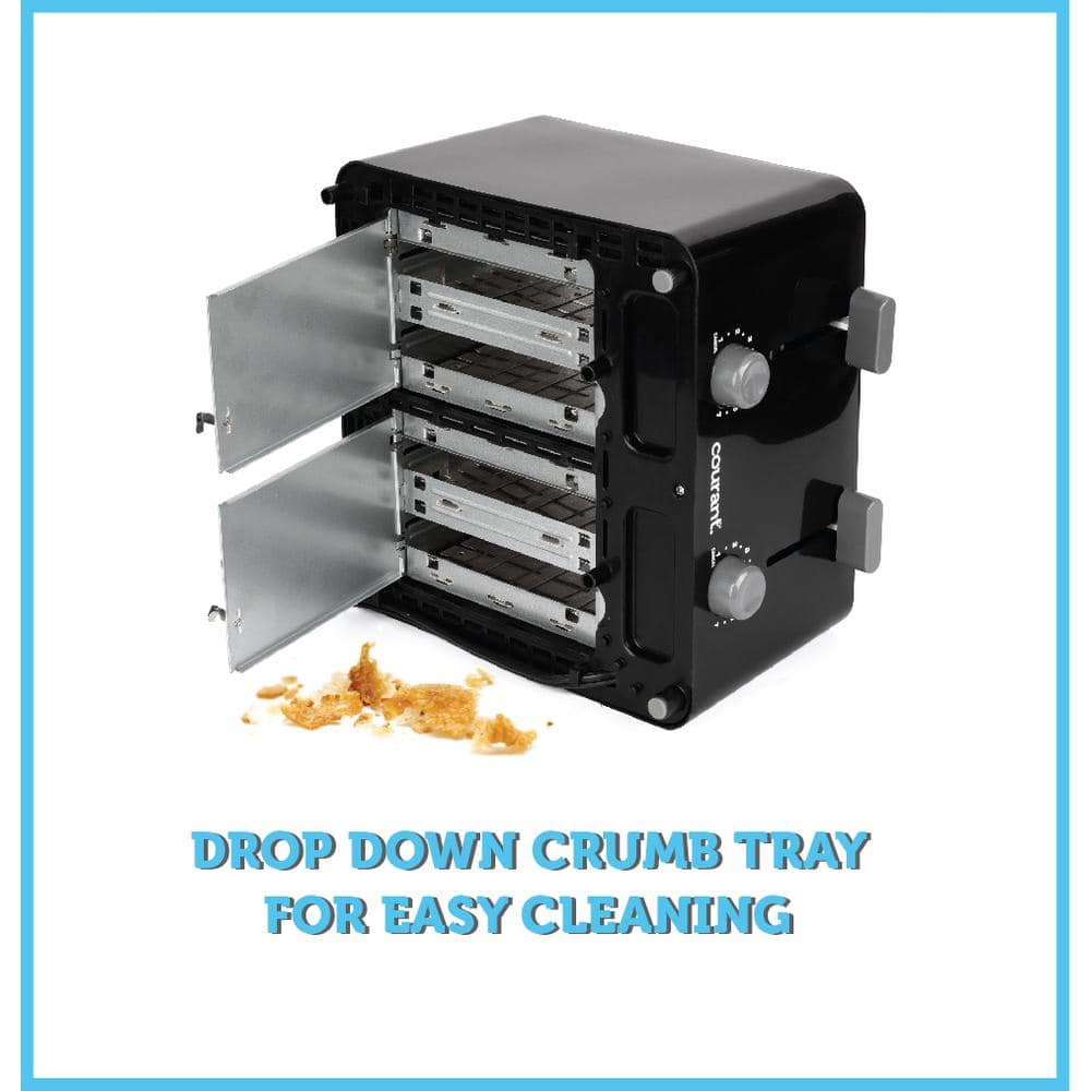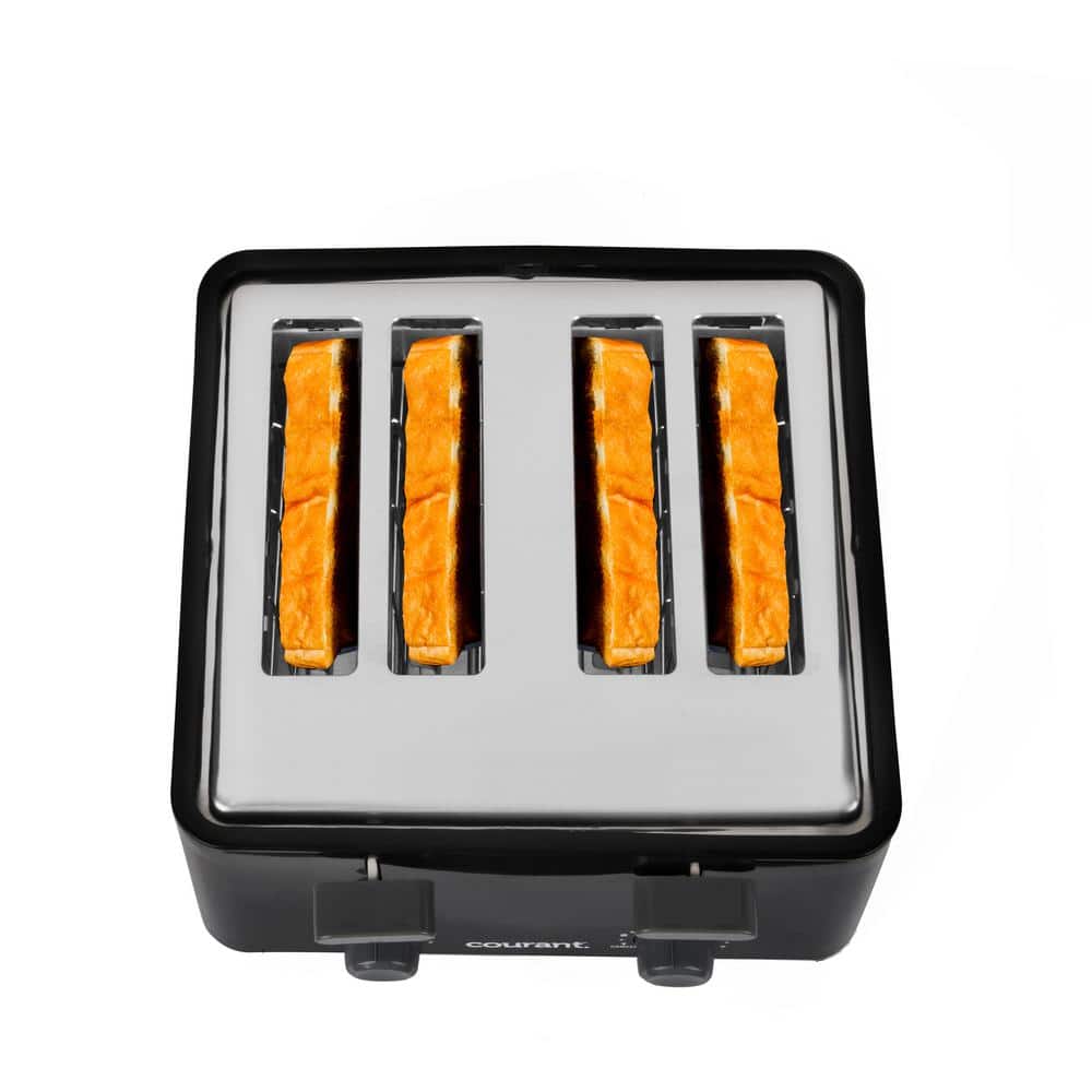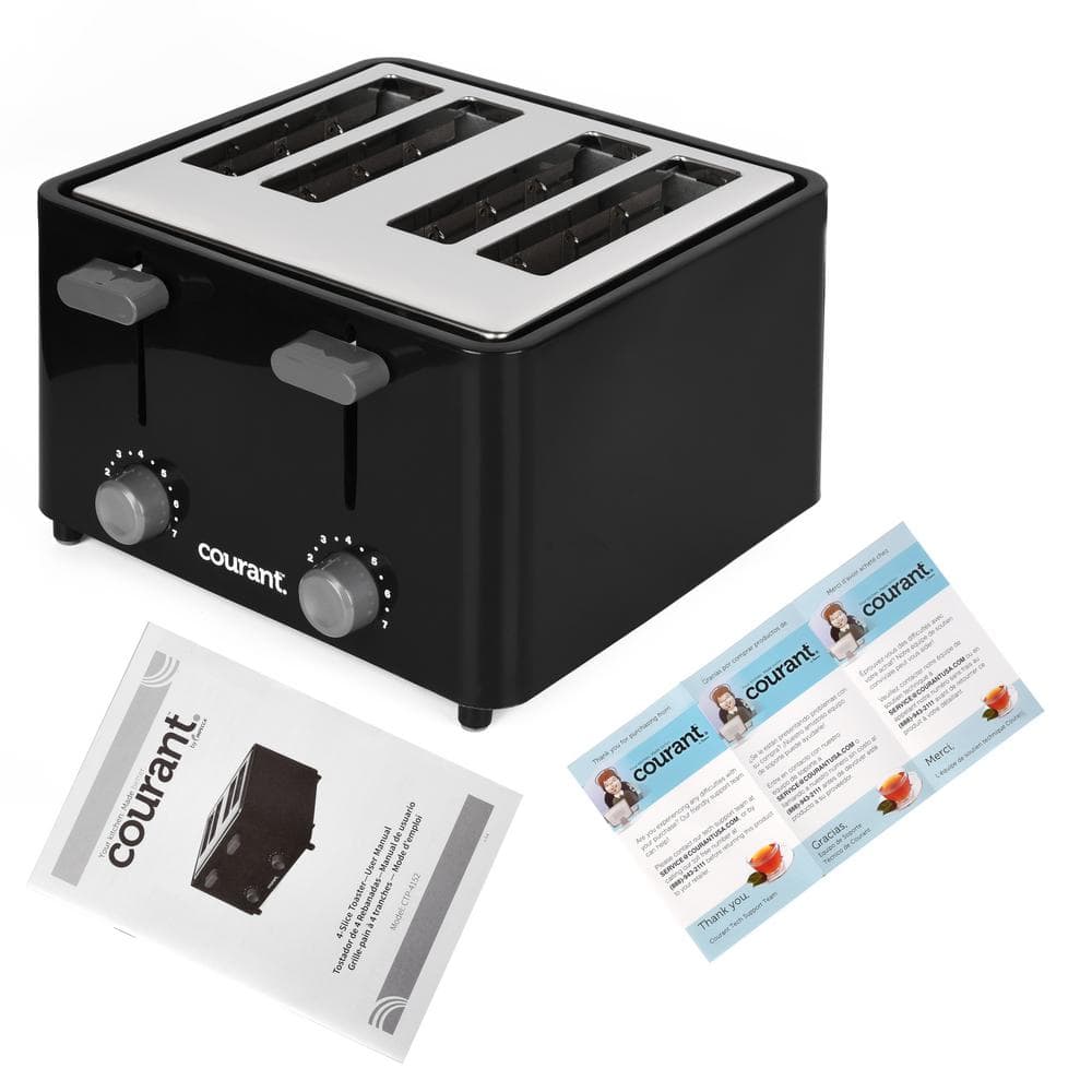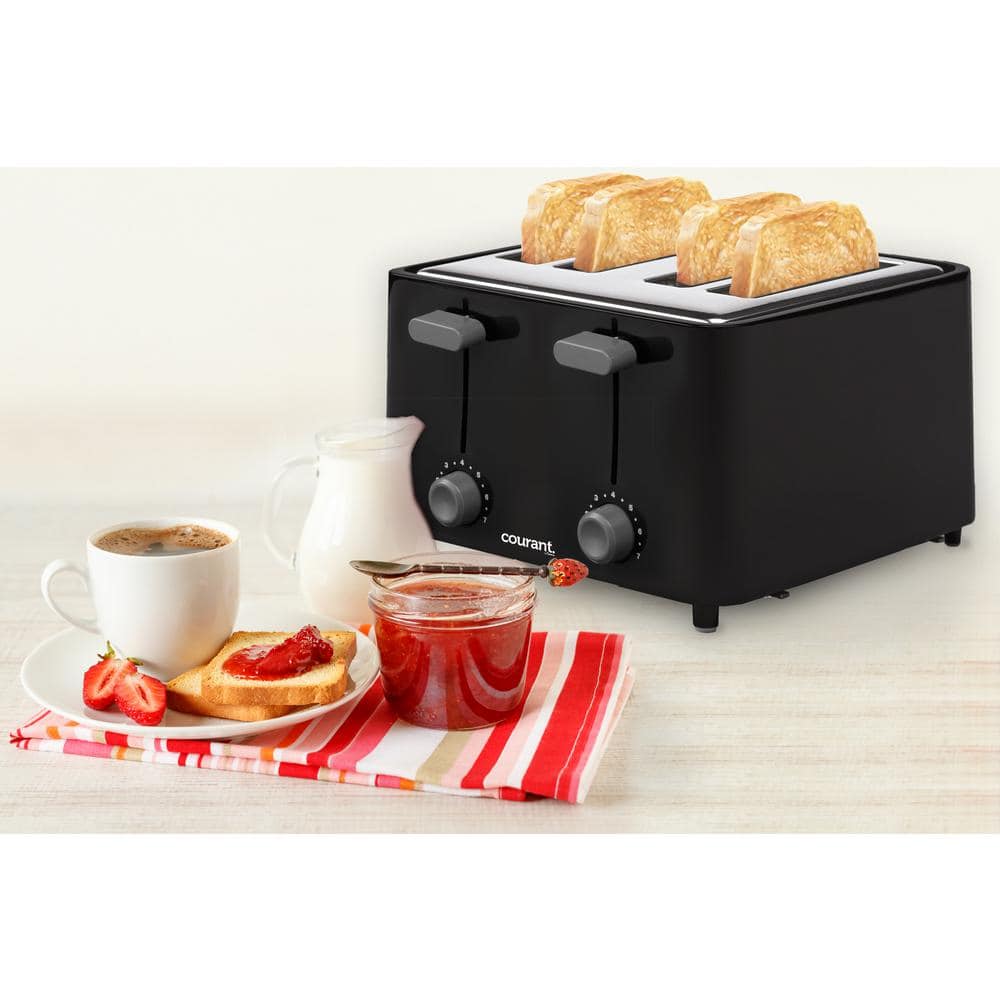 Courant 1480-Watt 4-Slice Black and Stainless Toaster with Drop Down Crumb Tray