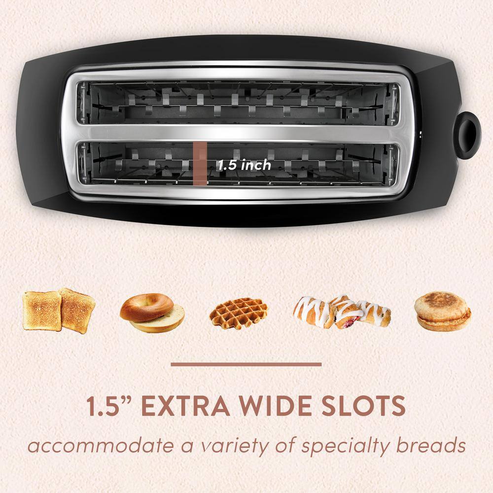 - Extra-long slots accommodate up to 4 slices of bread