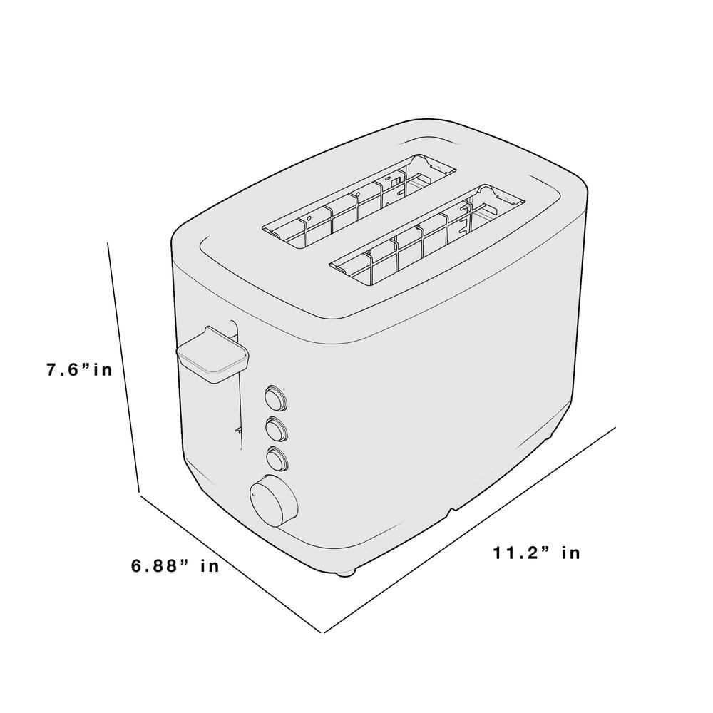 - 2-slice stainless steel toaster offers 7 shades of doneness