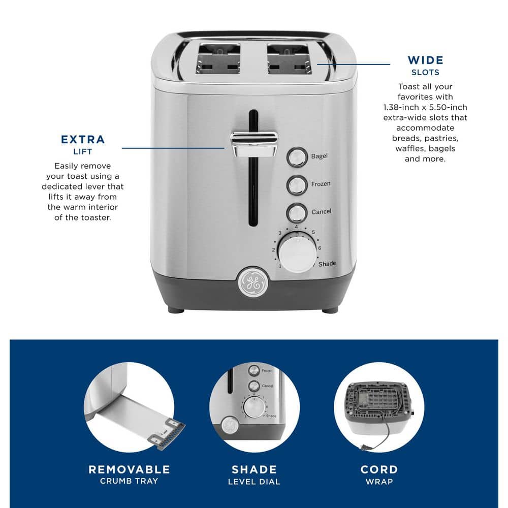 GE 2-Slice Stainless Steel Wide Slot Toaster with 7 Shade Settings