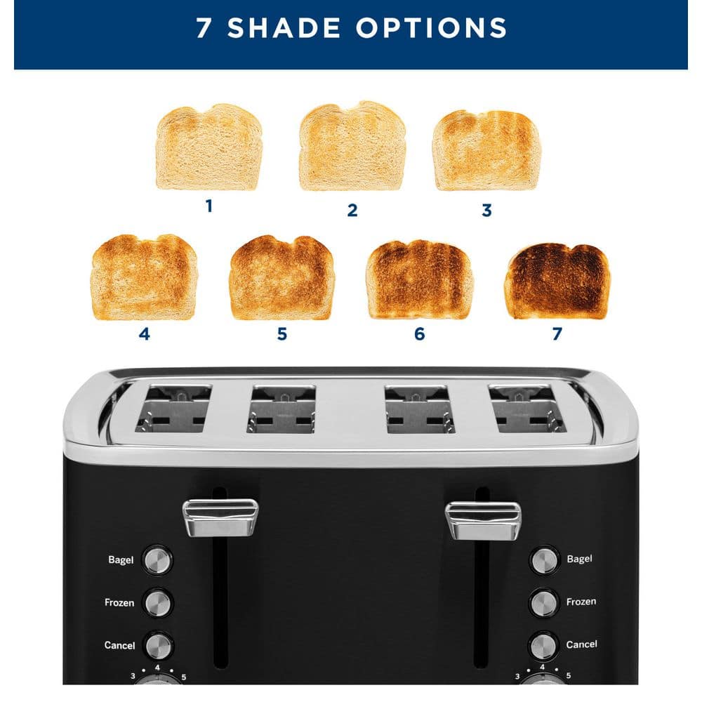 - 4-slice toaster with extra-wide slots for bread, bagels and more