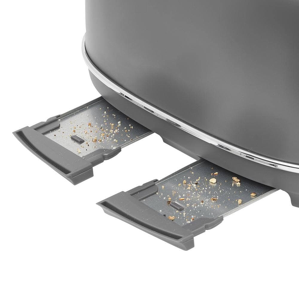 Inspired by traditional British homes, HADEN of England updates the stalwart toaster with modern hues and features while celebrating this kitchen essential. This stainless steel toaster coated with a chic shade of grey starts your day with perfectly browned toast and a soothing, sophisticated neutral. The classic curves, chromed accents and charming temperature gauge offer a bit of retro style. Six browning levels ensure every bagel, English muffin and slice of bread is toasted precisely to your liking-and the four extra-wide slots accommodate all of your favorites. Pair with the matching electric kettle for a coordinated countertop.