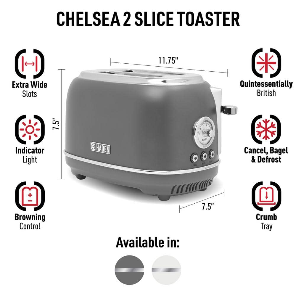 HADEN Chelsea 900W 2 Slices Of Bread Grey / Chrome Wide Slot Toaster