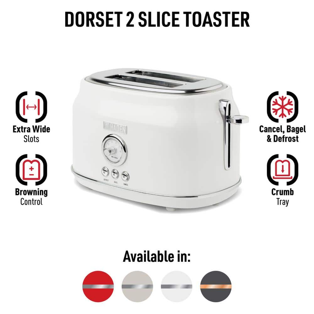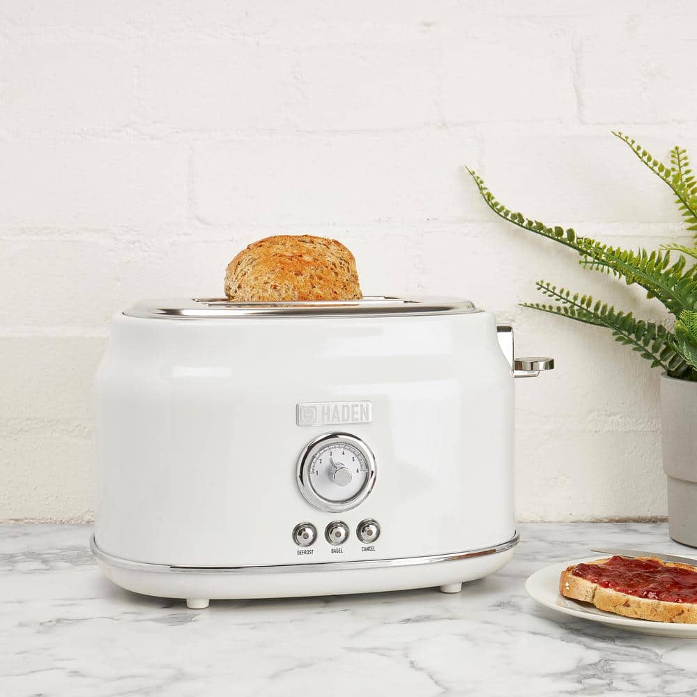 HADEN Dorset 900-Watt 2-Slice Wide Slot Ivory Retro Toaster with Removable Crumb Tray and Adjustable Settings