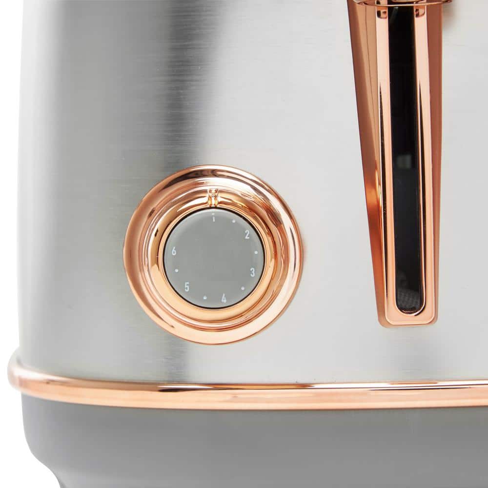 HADEN Heritage 1500-Watt 4-Slice Steel and Copper Wide Slot Retro Toaster with Removable Crumb Tray and Browning Control