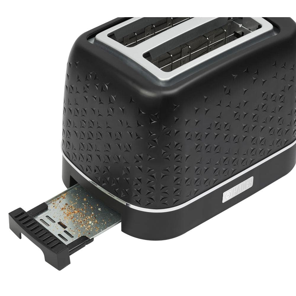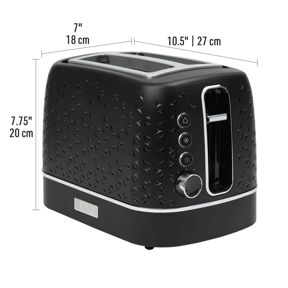 HADEN Starbeck 860-Watt 2 Slice Toaster Wide Slot Black with Removable Crumb Tray, Variable Browning Control Settings