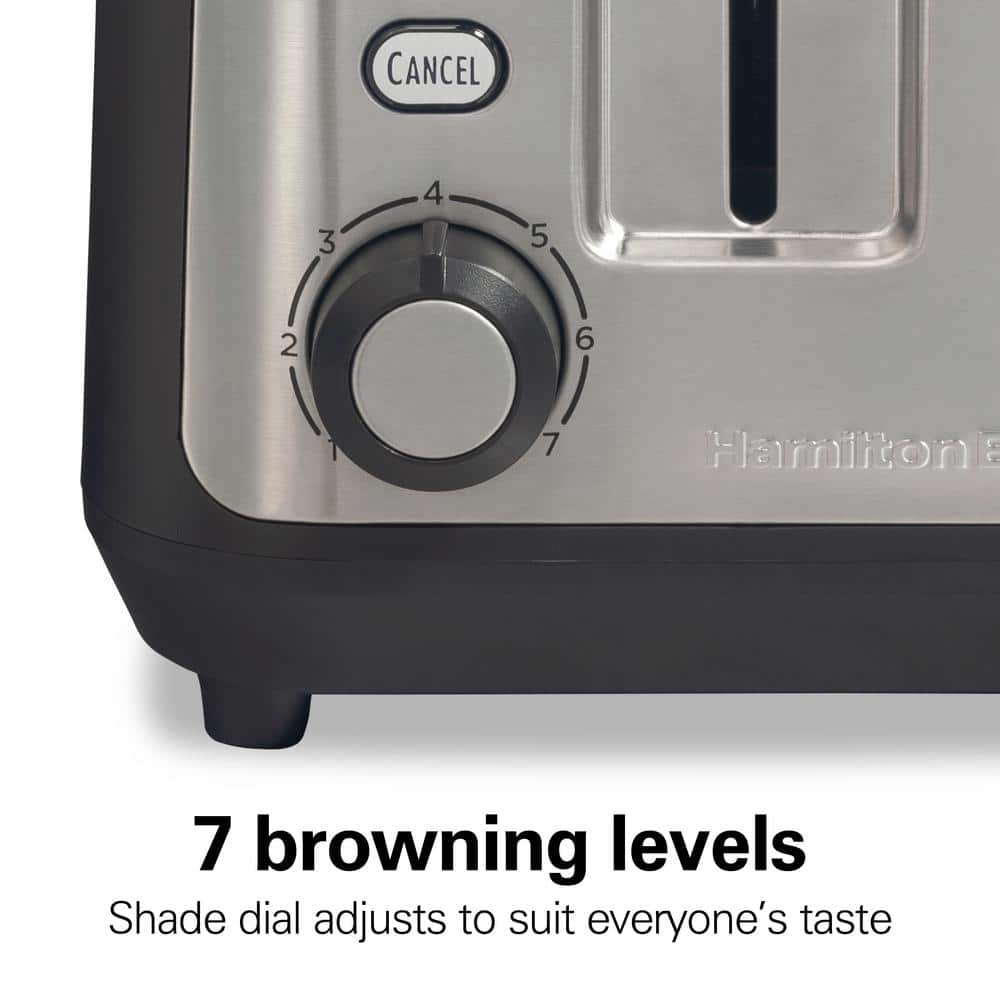 Expertly toast all of today's popular breads, from artisan, homemade and bakery-style breads to bagels, English muffins and waffles. The Hamilton Beach Gourmet 2 Slice Toaster was specially designed to evenly toast every kind of bread - even a long, single slice - to perfection. Its Sure-Toast 1 slice technology ensures balanced browning and color on both sides of bread, even if you're toasting one slice. The longer 6.5" toast slots conveniently toast longer slices - no need to cut bread to fit. The 7 shade selector dial provides a wide range browning levels for every taste and recipe, and it easily adjusts to everyone's toasting preference. Extra-wide slots fit thicker breads such as Texas toast, and the self-centering bread guides securely hold slices within each slot for consistent heating and even browning. When your toast is ready, the Toast Boost feature makes it easy to retrieve smaller breads such as English muffins. For perfect bagels, select the bagel button, which toasts the cut side and gently warms the rounded side. Includes 3 toasting functions with illuminated buttons and slide-out crumb tray for easy cleanup.