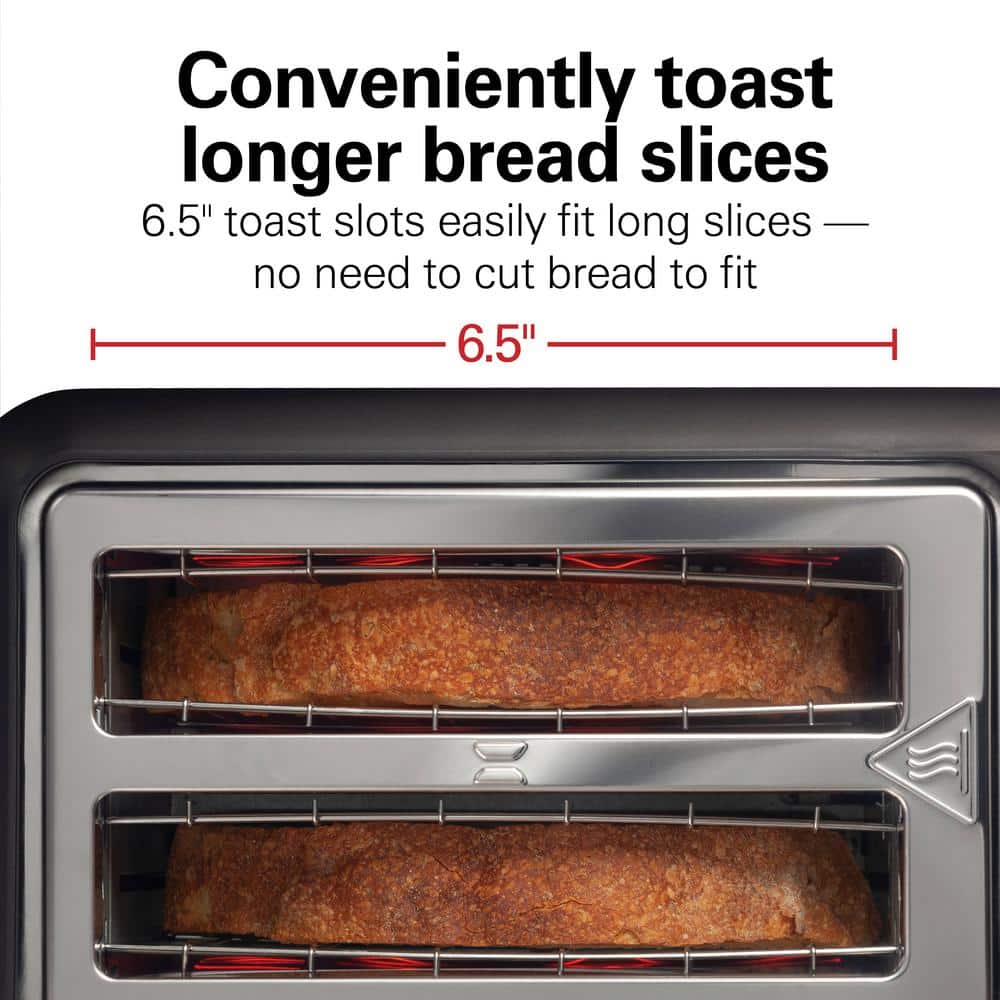 - Extra-wide slots fit thicker breads