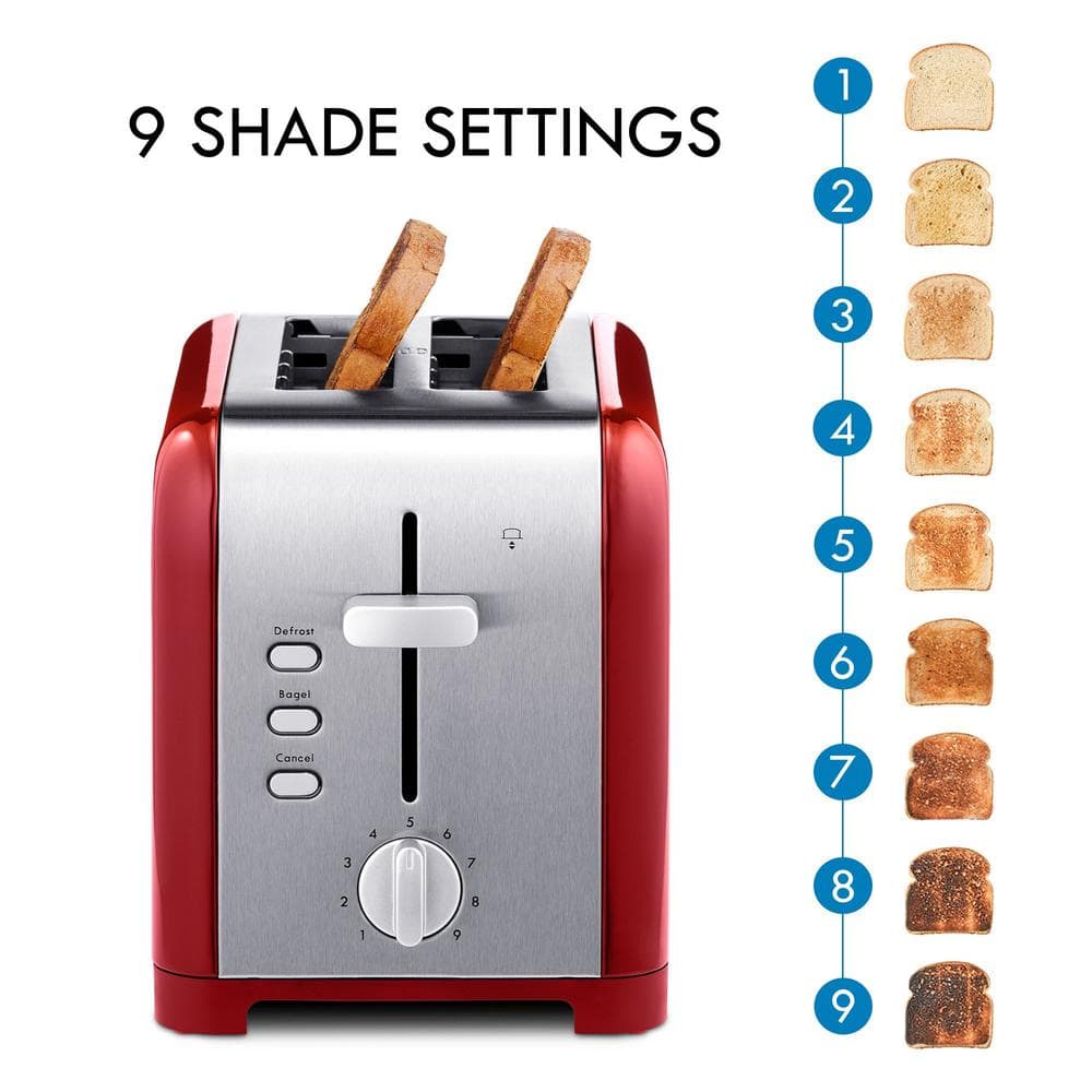 Simplify your morning routine with this elegant stainless steel toaster. Features include defrost and bagel function and 9 shade settings. Extra-wide slots with self-adjusting bread guides to fit everything from English muffins to Texas toast.