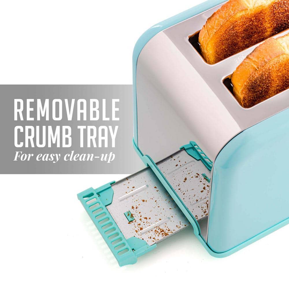 HADEN Heritage 1500-Watt 4-Slice Turquoise Wide Slot Retro Toaster with Removable Crumb Tray and Browning Control
