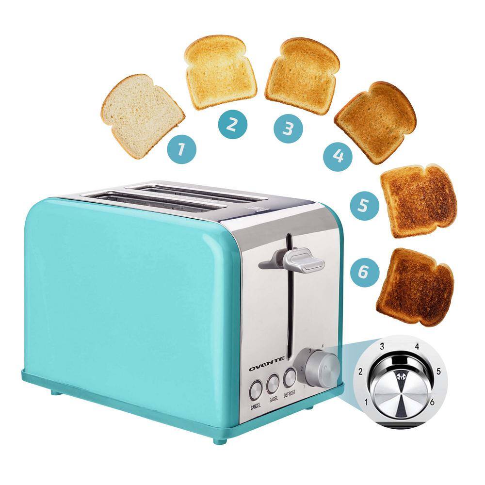 OVENTE 825-Watt 2-Slice Blue Stainless Steel Turquoise Bread Toaster