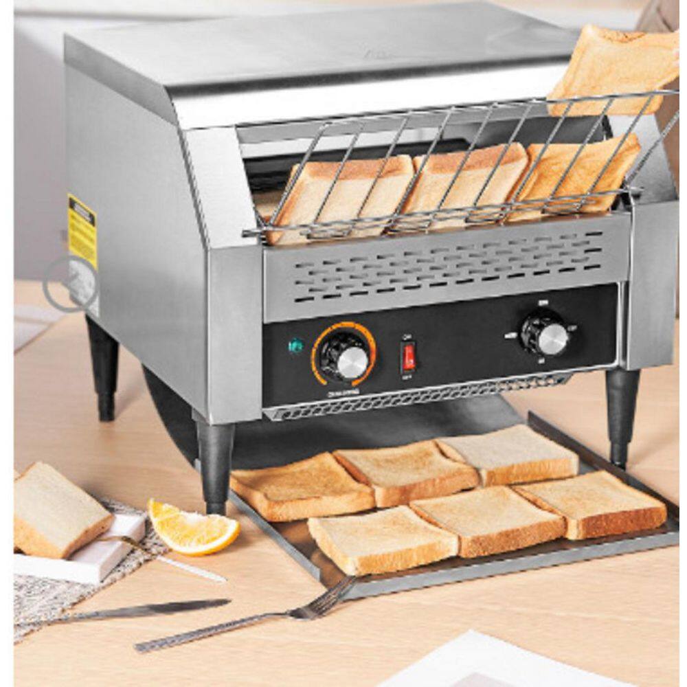 SVOPES Premium Commercial Conveyor Toaster. Efficient, Durable, and Easy-to-Use. The SVOPES commercial conveyor toaster is built with high-quality stainless steel, ensuring both durability and easy maintenance. Featuring a simple dual-knob control system, this toaster allows you to effortlessly adjust settings for optimal performance. Its removable crumb tray simplifies cleaning, while its quiet operation makes it ideal for restaurants, cafes, bakeries, and even home kitchens. With a 450-slice-per-hour capacity, this toaster efficiently handles large volumes, making it perfect for high-demand environments. High-Quality Commercial Conveyor Toaster, 450 Slices per Hour Capacity, Dual Knob for Simplicity, Safe and Durable Construction.