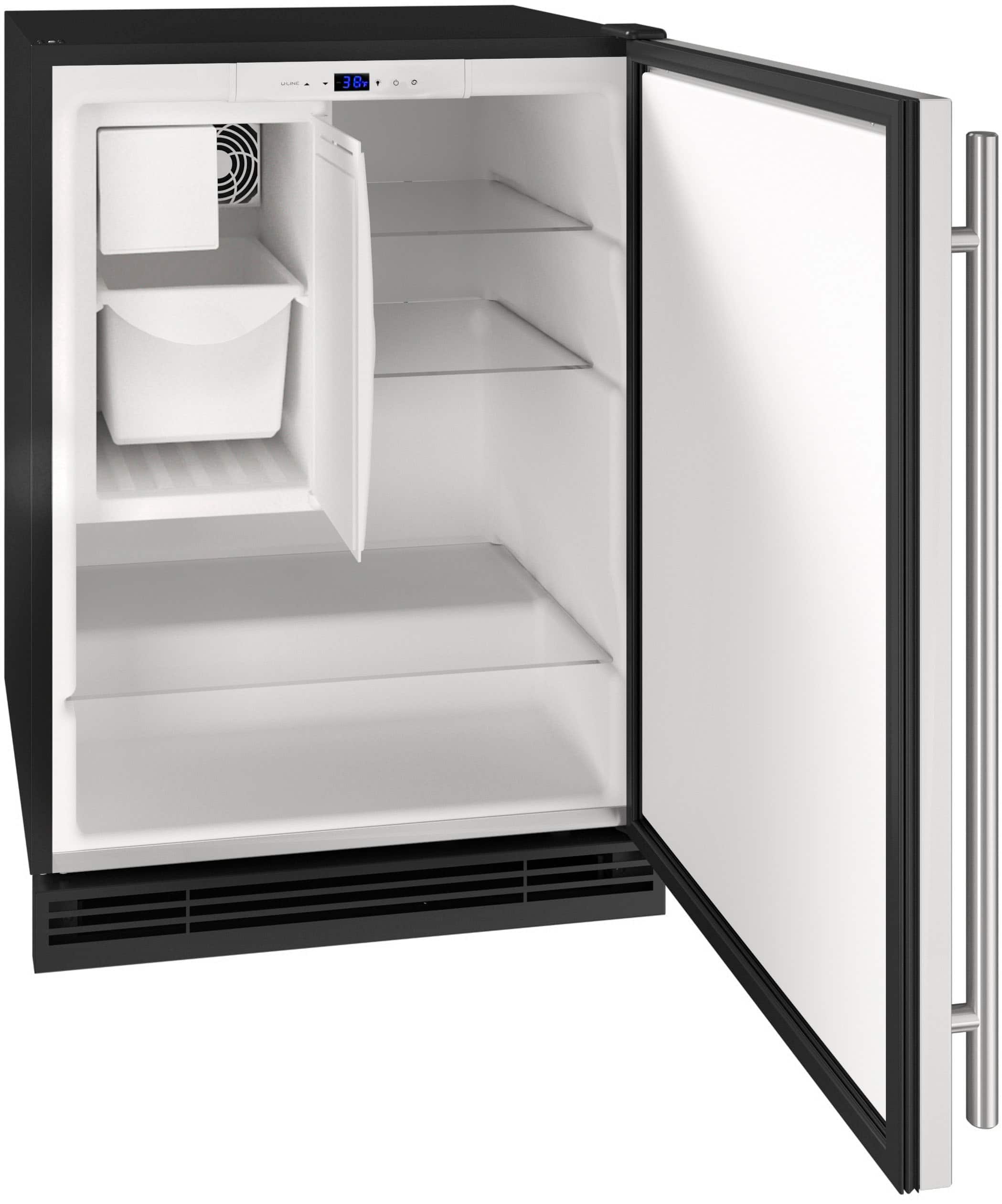 The U-Line 1 Class Combination Crescent Ice Maker and Refrigerator delivers refrigeration and ice in one package. The U-Line’s 1 Class Combo Crescent Ice Machine / Refrigerator is available with black, white, stainless steel or integrated door finishes that accept a custom door panel to match your surrounding cabinetry. No drain required. The combination refrigerator / Ice Maker units, offers the most usable refrigeration capacity, bright and open interiors, and an array of adjustable shelving options.