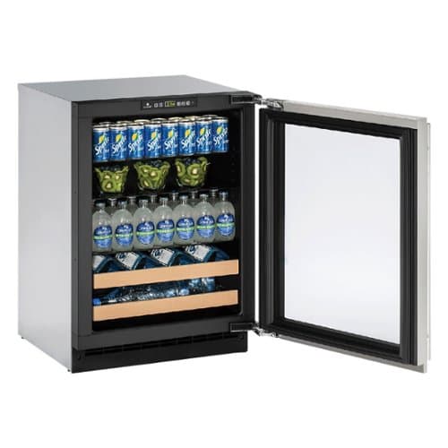 Stock up on cold drinks with this 24-inch U-Line beverage center. The 4.9-cu.-ft. interior, sturdy wine racks and adjustable tempered glass shelves make it easy to arrange a wide array of different cans and bottles. Use the integrated LED lighting to easily find specific drinks in this U-Line beverage center.
