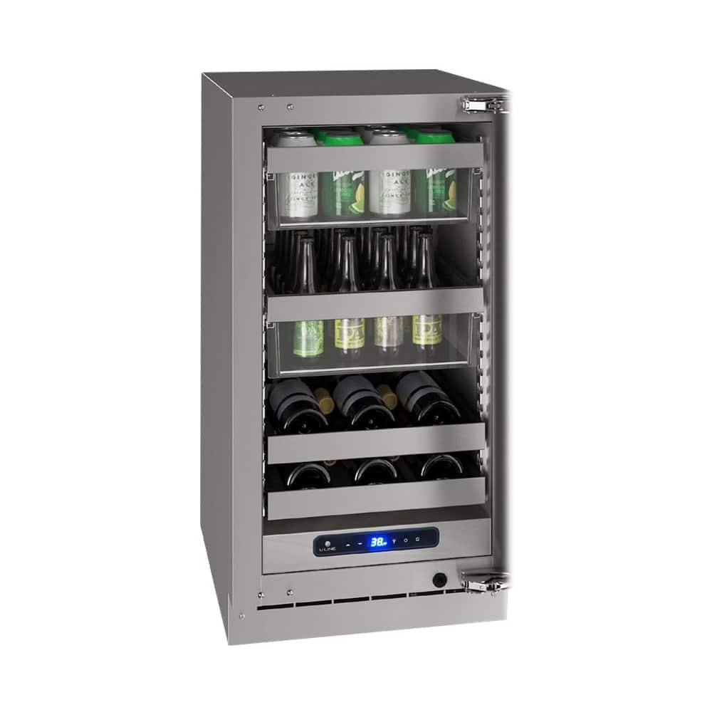 Find a refreshing drink with this U-Line 18-inch beverage center. The digital touch pad makes it easy to change temperature settings and adjust the LED lighting to illuminate your drinks. This U-Line 18-inch beverage center has a large 3.7 cu. ft. capacity and a U-Adjust interior that offers a variety of storage configurations.