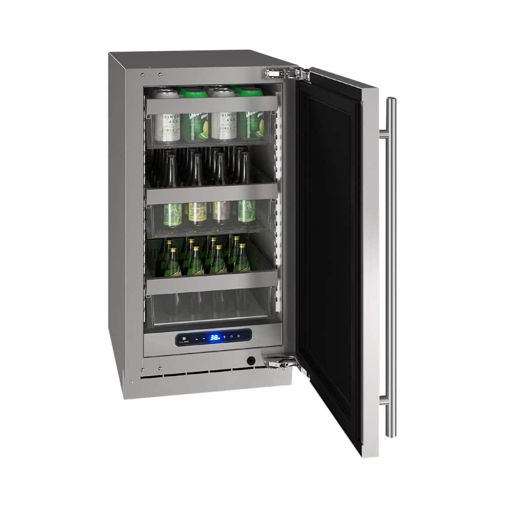 Keep beverages cold and secure with this U-Line 18-inch refrigerator. The digital touch pad and LED display makes interfacing simple, while the variable-speed compressor provides enhanced efficiency. This U-Line 18-inch refrigerator boasts stainless steel construction for protection against rust, dings and other damage, while the soft-close door helps prevent slamming.