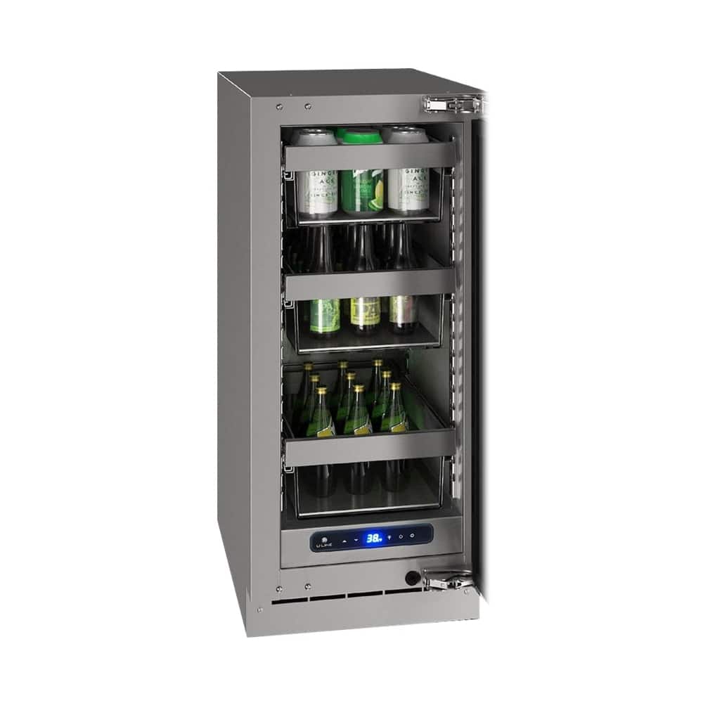 Protect and store drinks and snacks with this U-Line 15-inch reversible refrigerator. The articulating hinge helps ensure a smooth, gentle close, while the stainless steel construction protects against daily wear and tear. This U-Line 15-inch reversible refrigerator boasts a variable speed compressor for quickly adjusting the temperature and quiet operation.