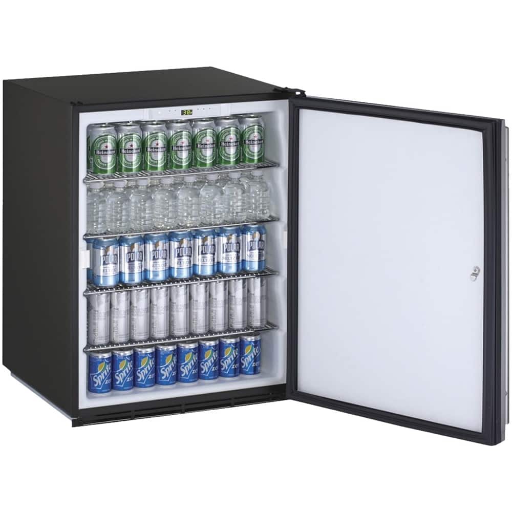 Keep your drinks cold and your food fresh with this U-Line compact refrigerator. Its 5.3-cu.-ft. capacity and four chrome-plated wire shelves hold up to 70 12-oz. bottles or 140 12-oz. soda or beer cans. This ADA-compliant U-Line compact refrigerator fits under 34-inch countertops and has single-hand controls for accessibility and convenience.