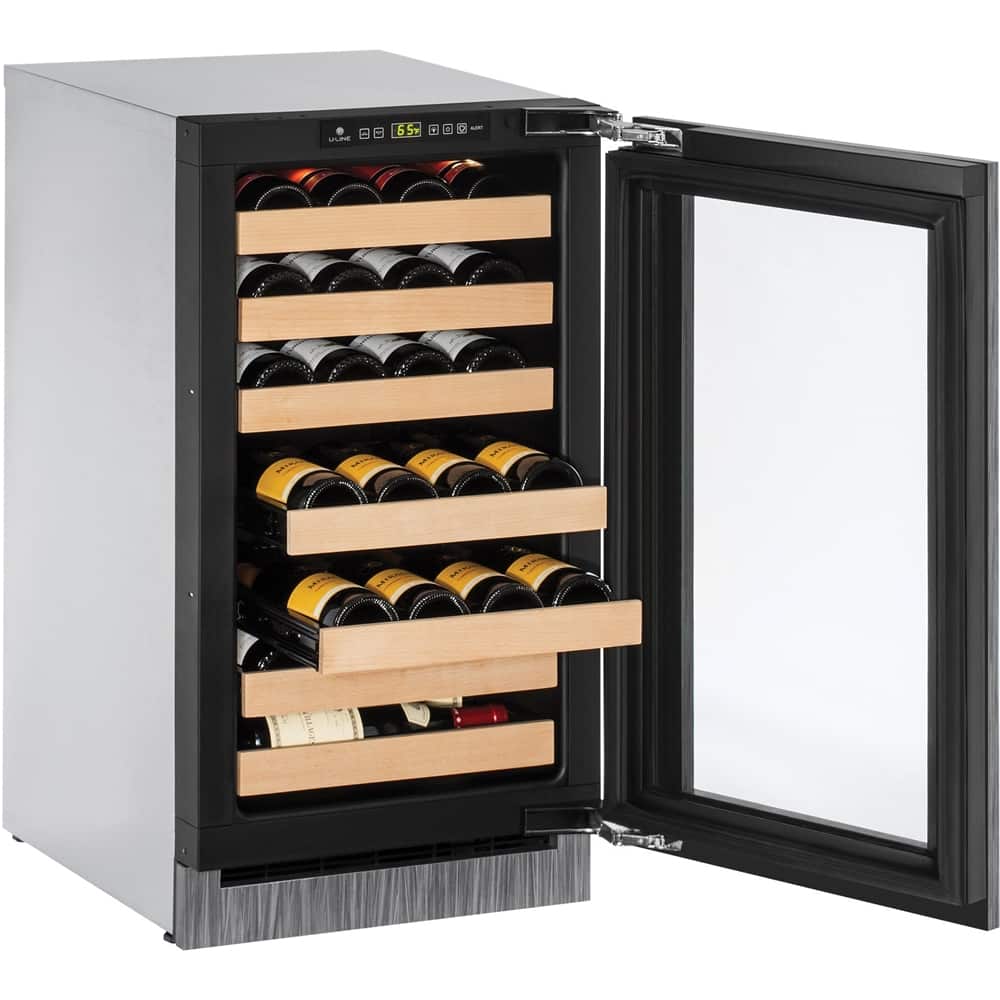 Store up to 31 bottles with this built-in U-Line wine storage center. The digital touch-pad control lets you set the storage temperature between 38-65 degrees F, and the convection cooling system chills your vintages quickly. This 18-inch U-Line wine storage center has full-extension racks for easy access to all bottles.
