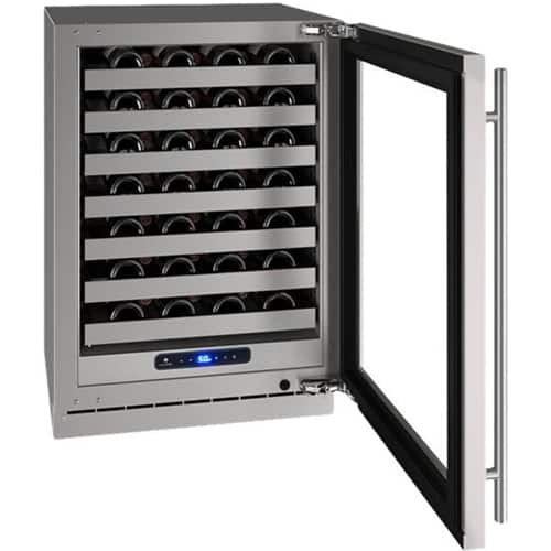Store up to 49 bottles of wine in this U-Line Wine Captain seven-rack refrigerator. The lowered interior and 19 adjustable positions let you reconfigure the inside and maximize space. A digital control pad makes this refrigerator easy to regulate, and the LED display improves visibility. This 24-inch U-Line Wine Captain seven-rack refrigerator has a variable-speed compressor that offers energy efficiency and fast temperature response.