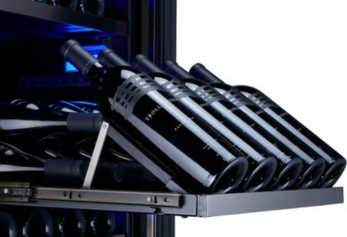 Optional 5-bottle display rack for use with full size Zephyr Presrv® wine coolers. Featuring black wood and stainless steel trim, this 5-bottle display rack is ideal for showcasing your favorite vintage. Please check your Zephyr Presrv® wine cooler's specification sheet to ensure compatibility.