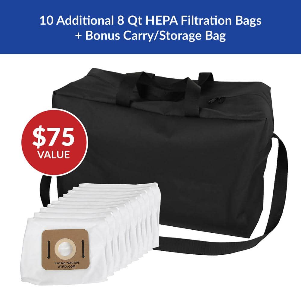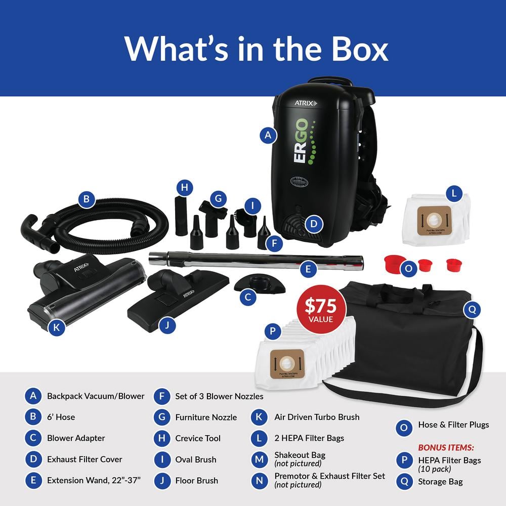 Atrix Commercial 8Qt Ergo Backpack Vacuum & Blower Multisurface Accessory Bundle