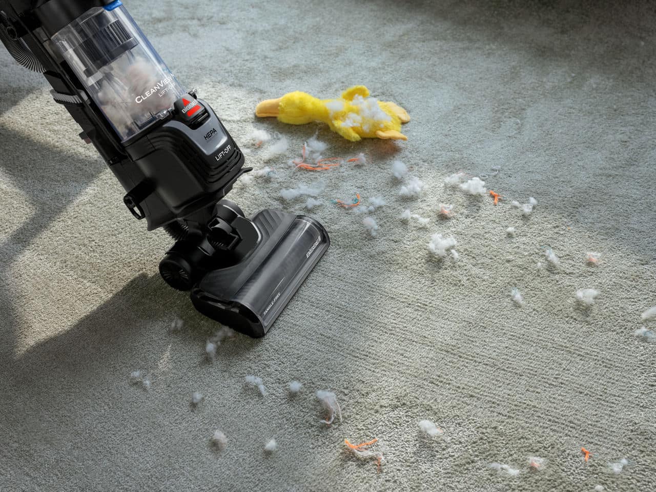 The powerful suction on this vacuum and detachable pod make it easy to remove everything from pollen to pieces of dog food from hard floors and soft surfaces.
