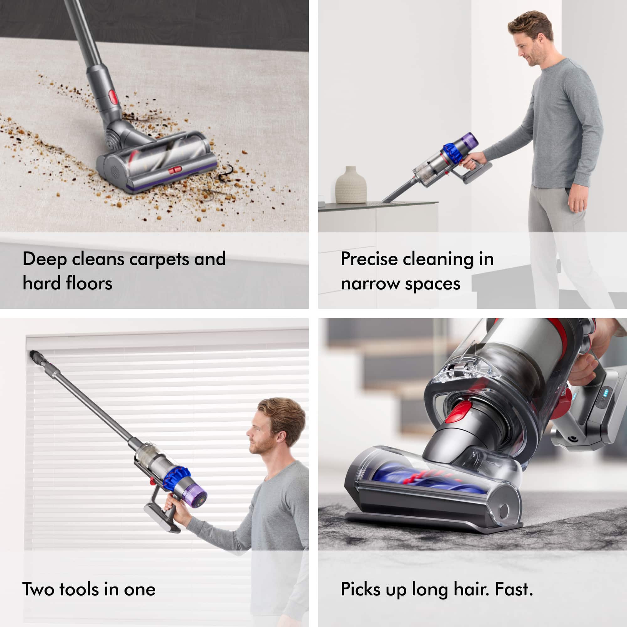 The Dyson V15 Detect Pro is a powerful, intelligent cordless vacuum to clean around your business. A piezo sensor intelligently optimizes power and runtime based on the debris picked up, reporting it all on the LCD screen.³ The de-tangling Digital Motorbar cleaner head deep cleans carpets and hard floors and adapts suction power to floor type. Its versatile cordless format transforms into a handheld vacuum with one click so you can clean up high, down low, and everywhere in between.
