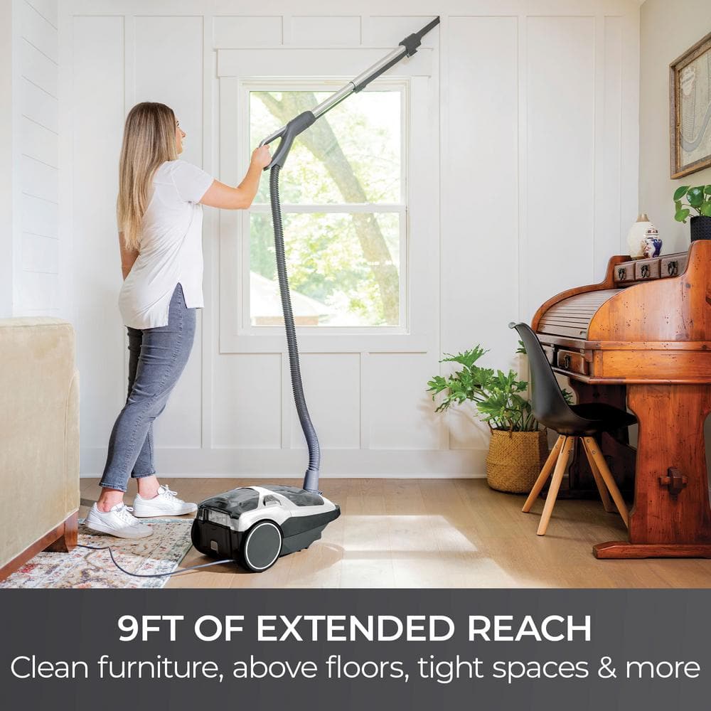 Tired of dealing with pet hair, dust, and crumbs. Meet the Kenmore POP-N-GO Bagged Canister Vacuum with Hair Eliminator - your ultimate cleaning ally. This versatile vacuum effortlessly handles hardwood, laminate, and carpets with its all-floors design while actively preventing hair from wrapping around the brushroll for a tangle-free experience. The convenient POP-N-GO floor brush, stored in the front case, makes quick cleanups a breeze. For those tough spots, the motorized Pet PowerMate attachment easily lifts stubborn hair and dander from carpets, stairs, and furniture. Breathe easier with the completely sealed Allergen Seal system that traps 99. 97% of particles down to 0. 3 microns, keeping your air clean and fresh. Plus, tackle above-floor cleaning with ease using the telescoping wand, which extends up to 9. 5 feet. The Kenmore POP-N-GO Bagged Canister Vacuum redefines effortless deep cleaning.