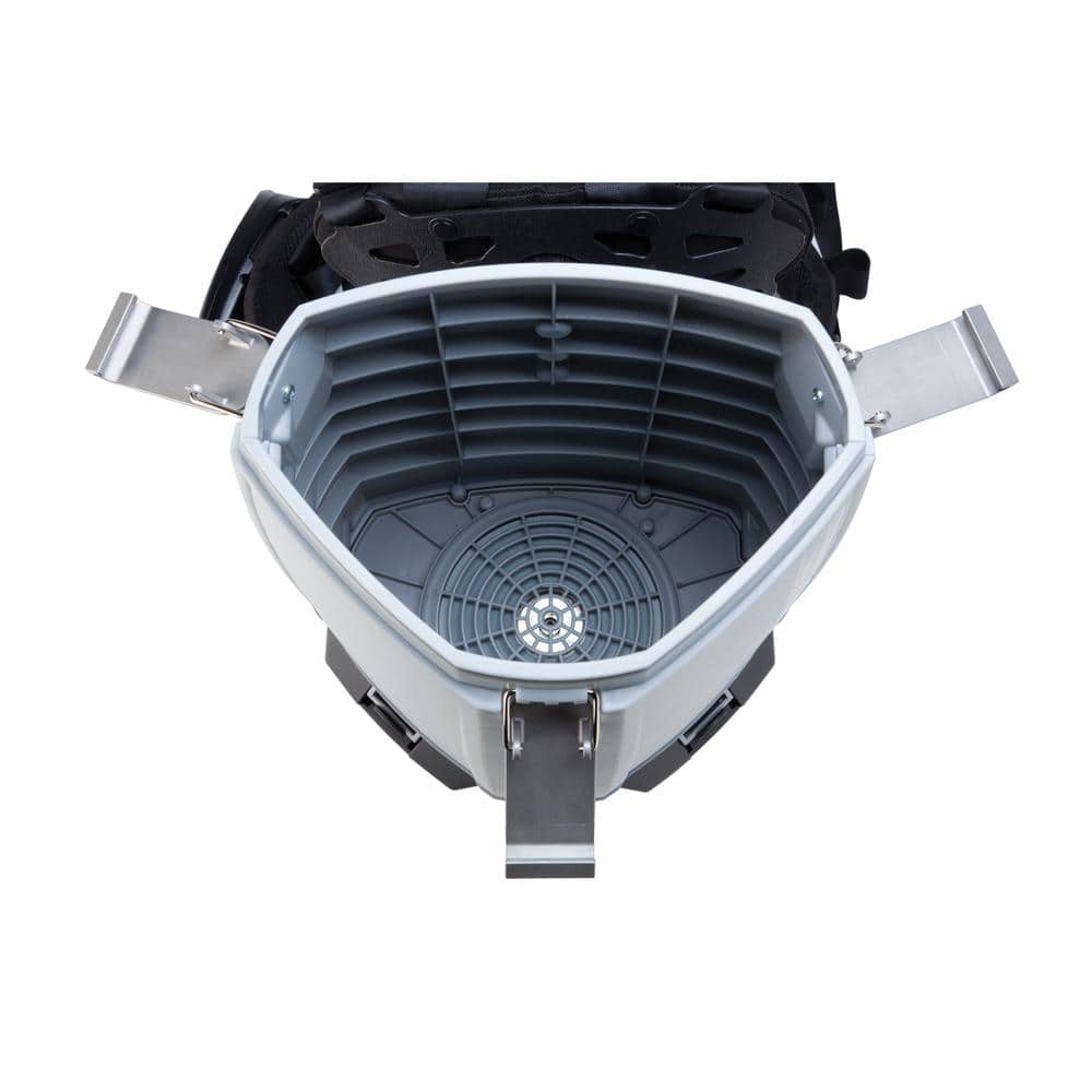 Maintain carpets in large buildings with this 10 quart backpack vacuum cleaner. The triangular shape offers a comfortable fit while making it easy to vacuum in confined spaces. An open-weave harness keeps you cool as you clean, and the articulating design provides a full range of movement. Includes kit 107100: 14 in. Xover floor tool (107016), telescoping wand (107628), 17 in. crevice tool (100108), 3 in. dust brush (100110), 5 in. upholstery tool (100115) plus 2 filter bags (107313) and a 50 ft. power cord, reducing the number of times you need to shift from one outlet to another. The quick-release latches allow for fast, convenient bag changes. Unsurpassed 3 year warranty. Use filter bags open collar #107313.