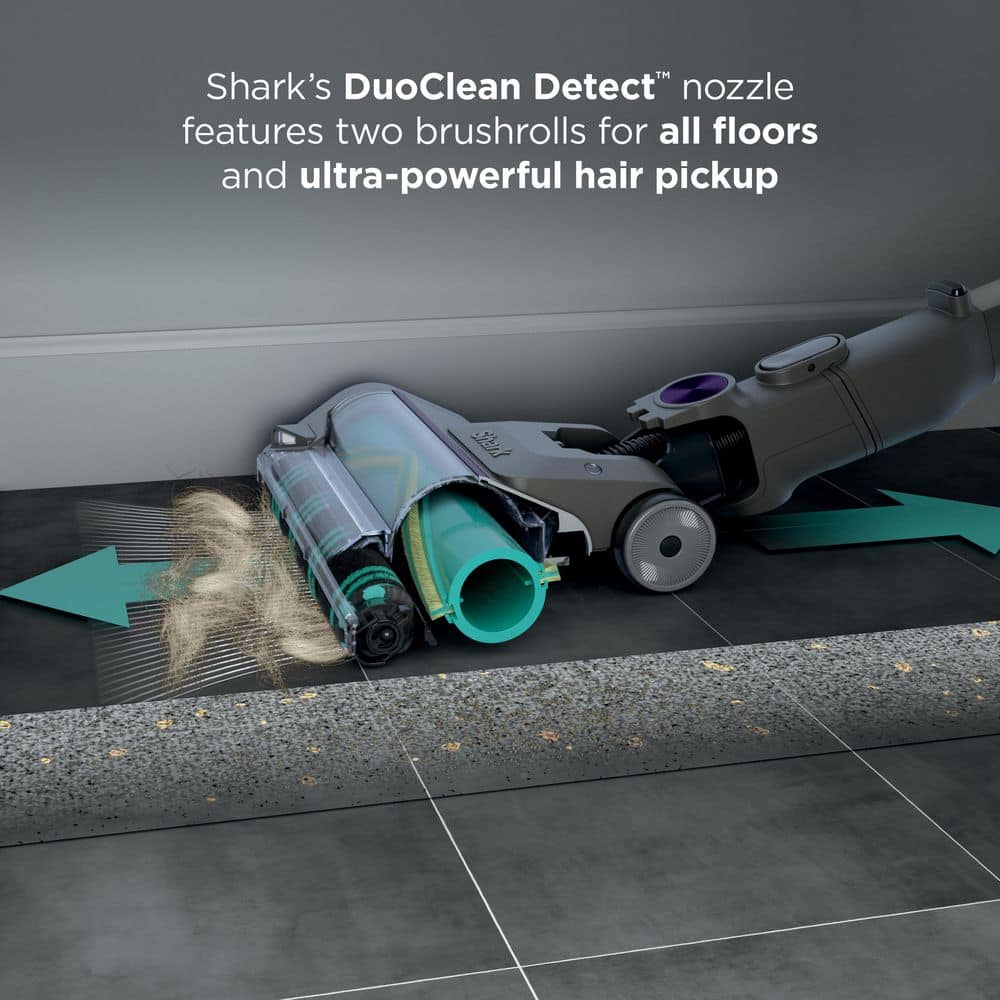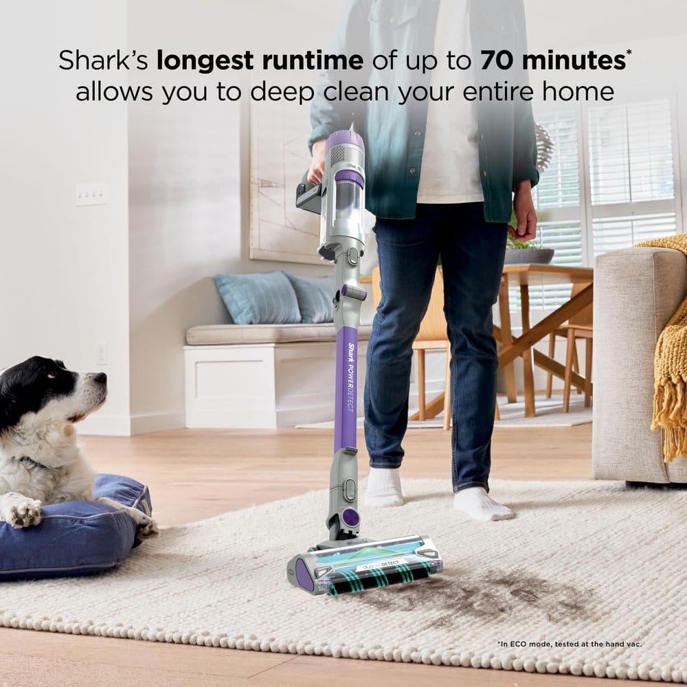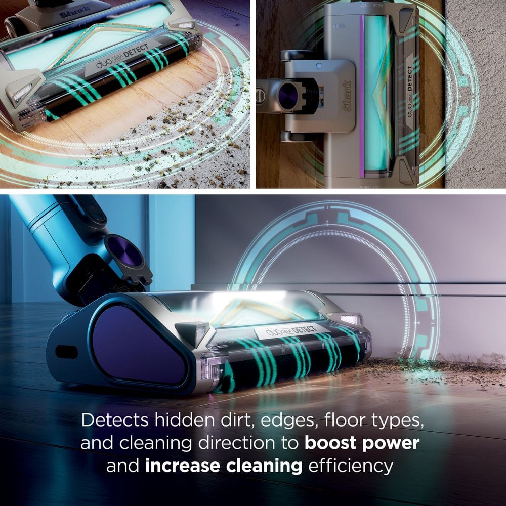 The Shark Power Detect (IP1251) is the ultimate cordless solution for powerful, intelligent, whole-home deep cleaning. Power Detect is powered by Shark's most powerful cordless suction PLUS a redesigned Duo Clean Detect nozzle with dirt-detecting intelligence and multi-directional cleaning, making it THE BEST debris cleaning† of ANY cordless vacuum. While most vacuums push around debris in the back-stroke, the redesigned Duo Clean Detect nozzle eliminates this problem by capturing more dirt, dust, and debris in forward AND reverse for faster cleaning§. Power Detect has an impressive 70min of runtime§§ and a Multiplex wand for effortless under-furniture reach and flex storage. (Based on ASTM F558, measured at the hand vacuum, tested in Boost mode Based on Geomean of ASTM F2607, and IEC62885-2 (5.5) vs cordless market vs. Shark Stratos IZ862H vs. Shark Stratos IZ862H measured at the handman in ECO mode)
