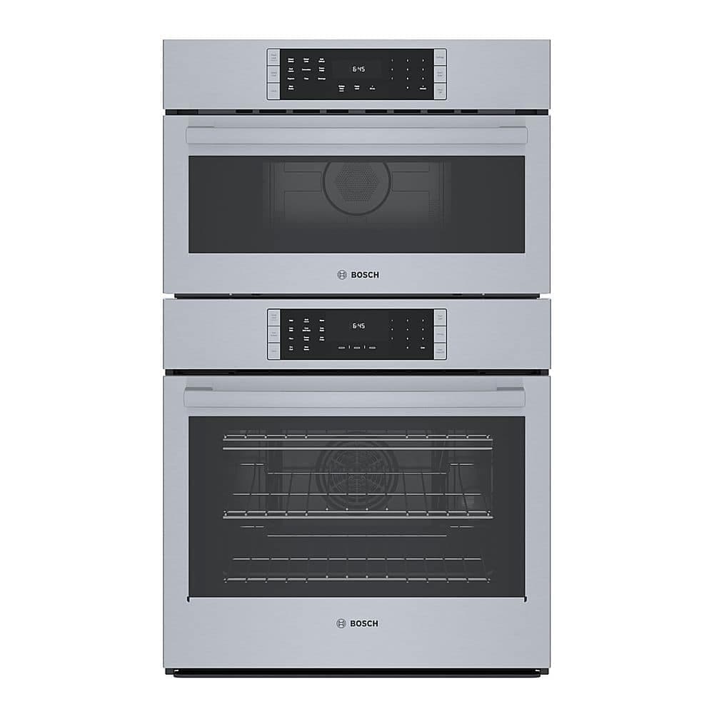 Prepare meals with this Bosch combination oven. On top is the speed oven, which combines microwave speed with conventional oven results, and underneath is the 4.6 cu. ft. convection oven, which provides even heating. This Bosch combination oven fits flush to your cabinets, lending a clean, modern look to your kitchen.