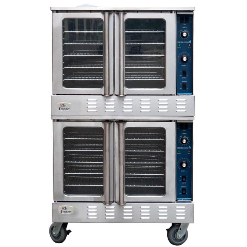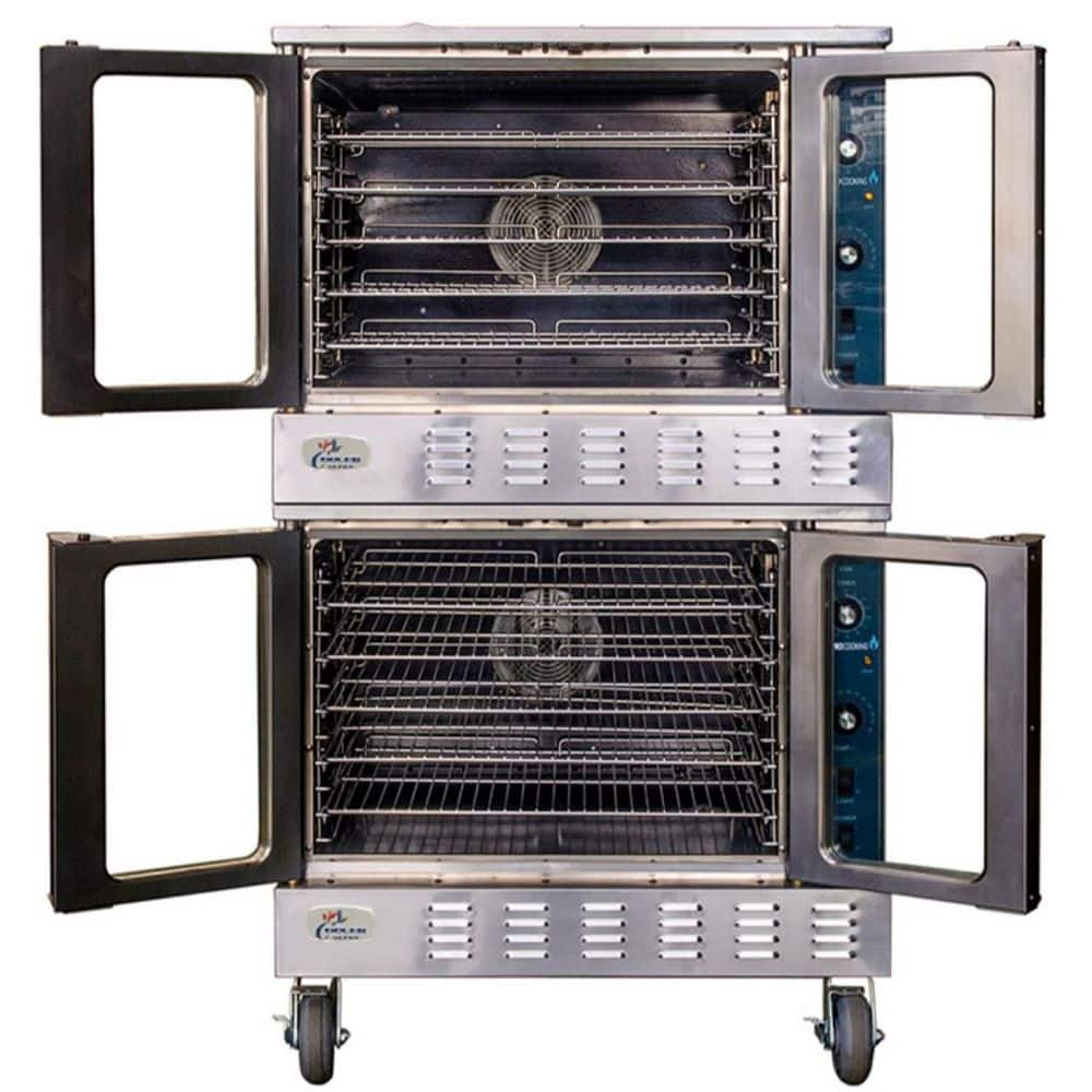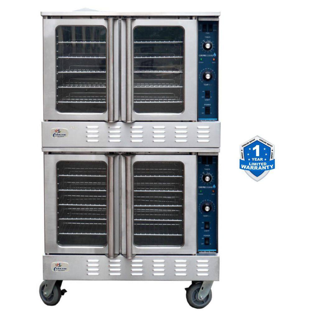 Cooler Depot 38 in. W Double Deck Commercial Electric Convection Wall Oven 3-Phase in Stainless Steel 108,000 BTU w/ Casters 208-Volt