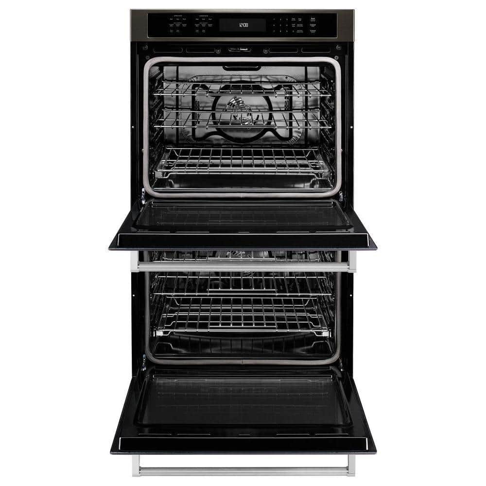 KitchenAid 30 in. Double Electric Wall Oven Self-Cleaning with Convection in Black Stainless