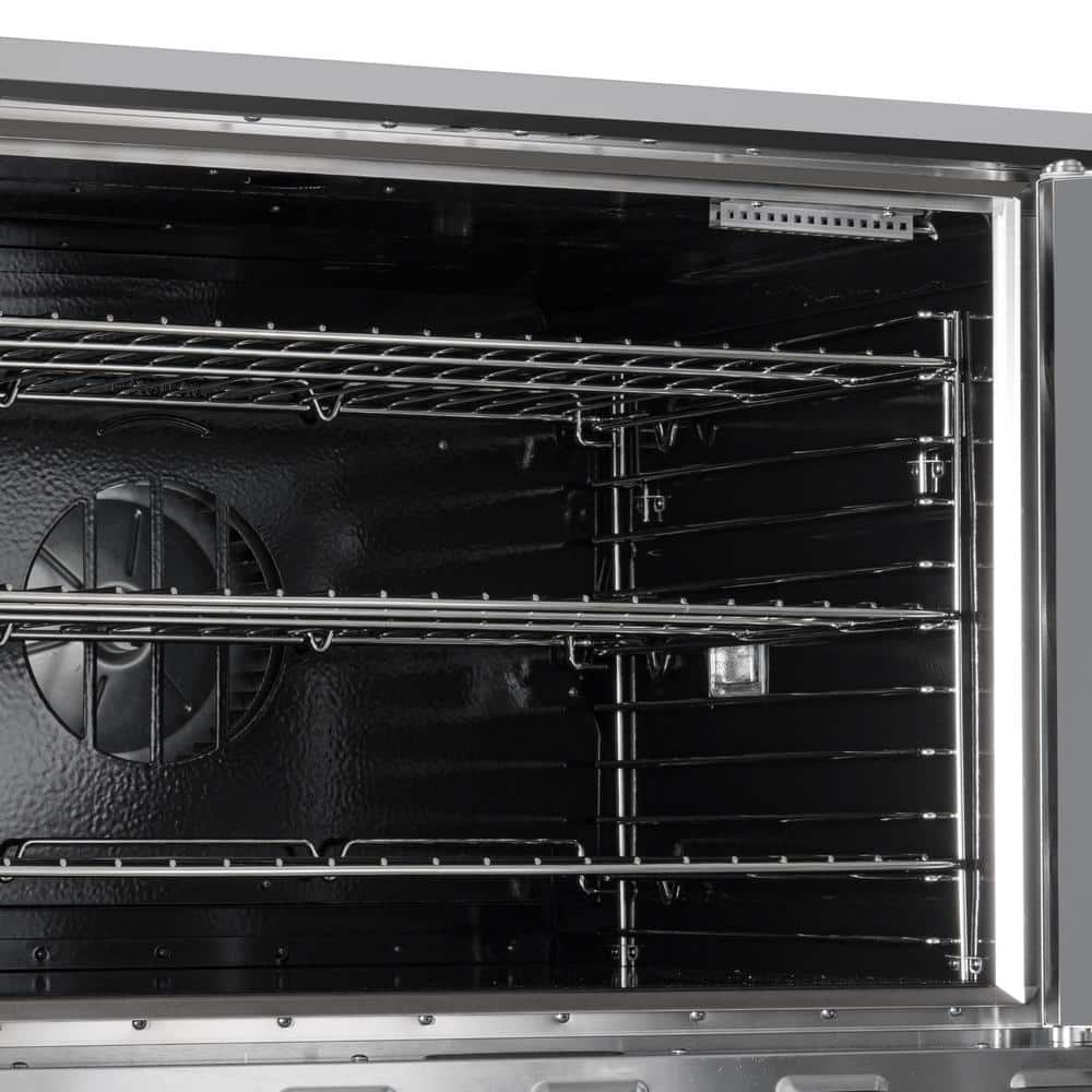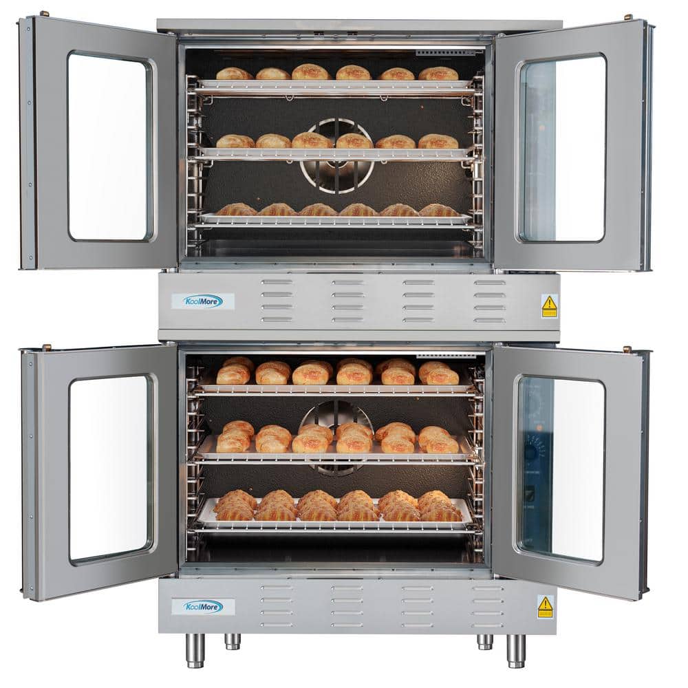 Every Chef and Commercial Kitchen Deserves a Convection Oven Designed for Fast-Paced EfficiencyWhen it comes to a commercial kitchen there are a lot of working parts. But few appliances are more important than a high-quality, reliable oven. We developed the KoolMore Double Commercial Convection Oven for liquid propane cooking and baking because it offers superior temperature control, convenience, and versatility when it comes to making bread, pizza, pastries, cookies, and so much more. A large, yet streamlined design with two decks standing on top of one another this is the ultimate convection oven for maintaining a consistent kitchen process.