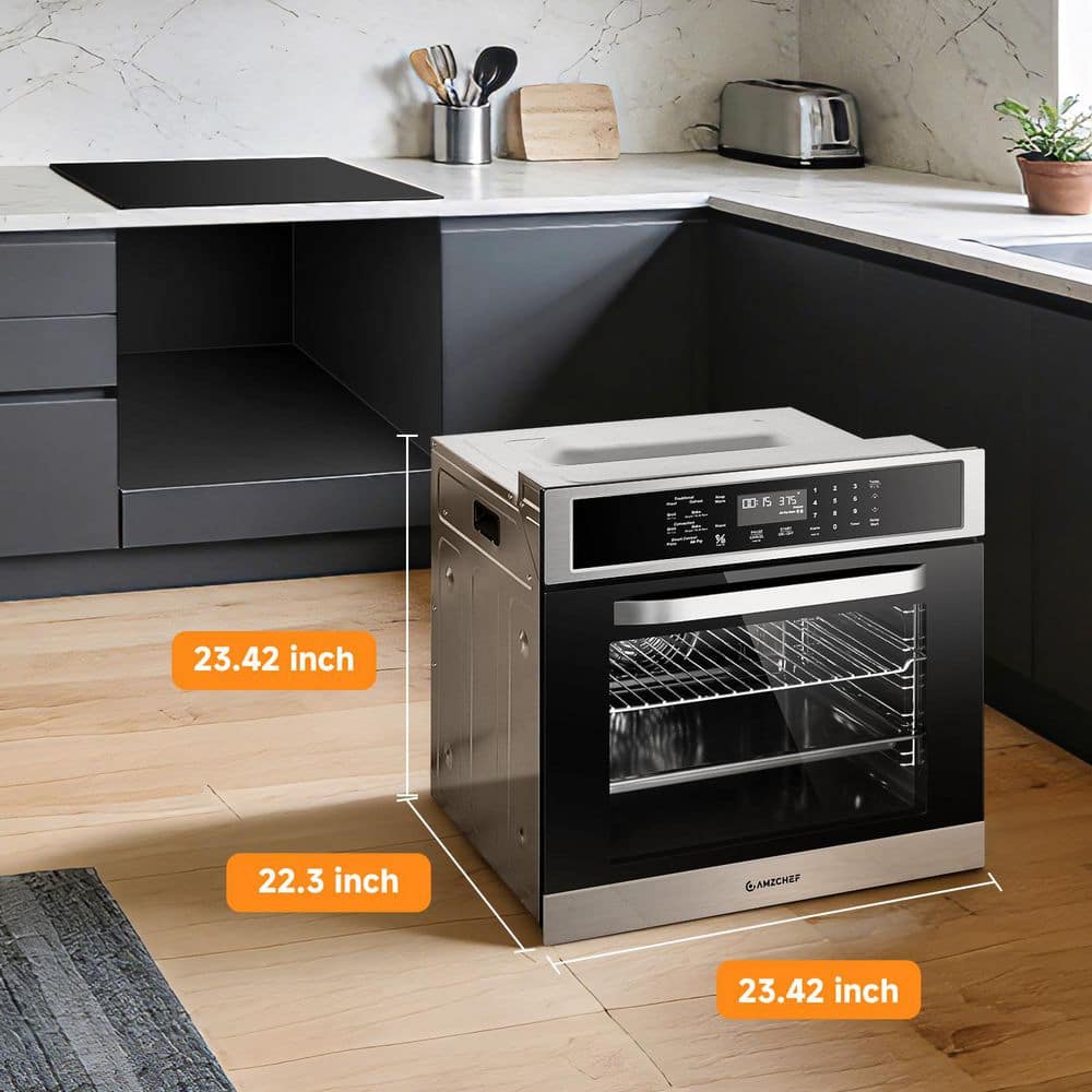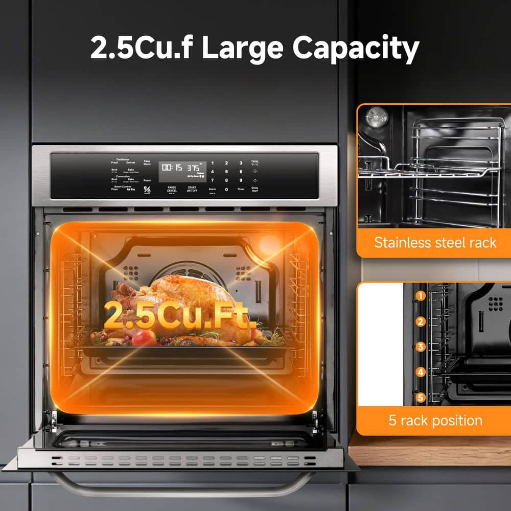 amzchef 24 in. 2.5 Cu. Ft. Single Electric Wall Oven with Convection & Air Frying, Safety Lock, Timer & Alarm, Stainless Steel