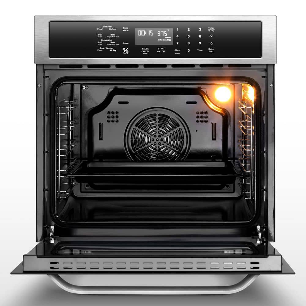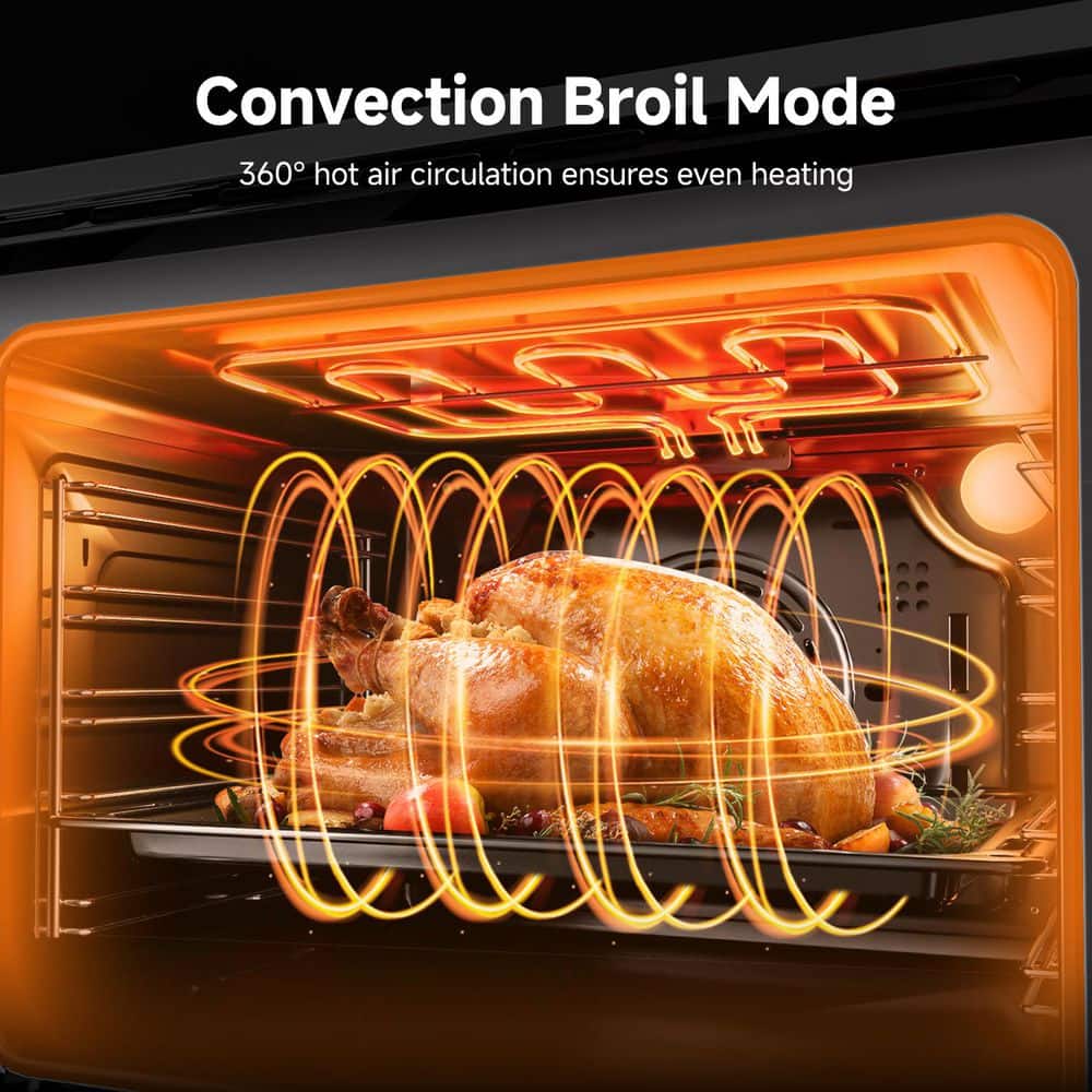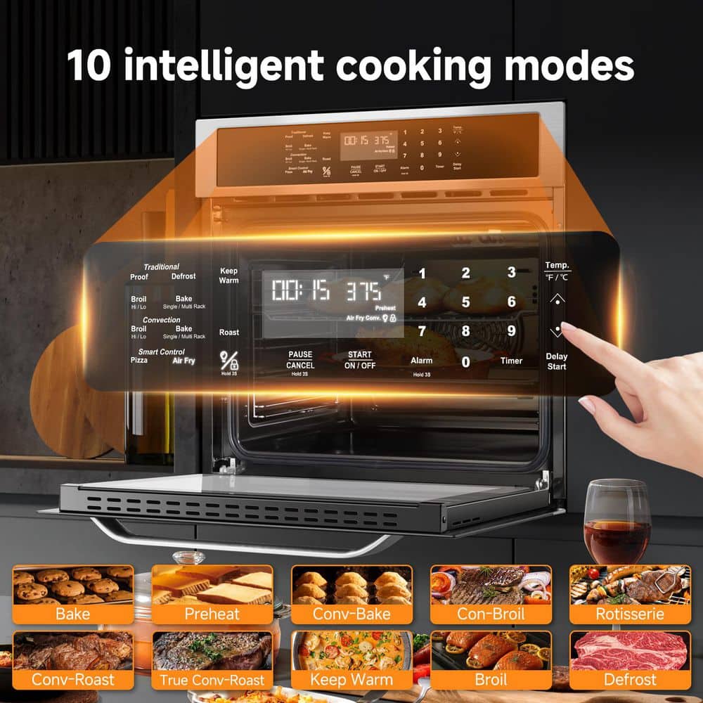 This 24 in. 2800W versatile electric oven combines 10 essential functions-Convection Cooking, Air Frying, Broiling, Baking (single/multi-rack), Dehydrating, Proofing, Defrosting, Warming, and more-to master any recipe with ease. Achieve perfection with the built-in sensor probe that monitors internal temperature in real-time, delivering precise heat up to 480°F for flawless results every time. Enjoy faster, even cooking with True Convection technology, which circulates hot air uniformly around your dishes. For crispy, golden favorites without the guilt, the Air Fry mode offers low-oil, healthy meals. With a spacious 2.5 Cu. Ft. (70L) capacity, this oven is perfect for family feasts or game-day gatherings. Intelligent timing features-integrated clock, timer, alarm, and delayed start-make cooking smarter and effortless. Safety and convenience are paramount, featuring a child safety lock and a 90-degree wide-open door for easy access. Elevate your culinary experience with the ultimate All-in-One Oven, your new kitchen powerhouse.