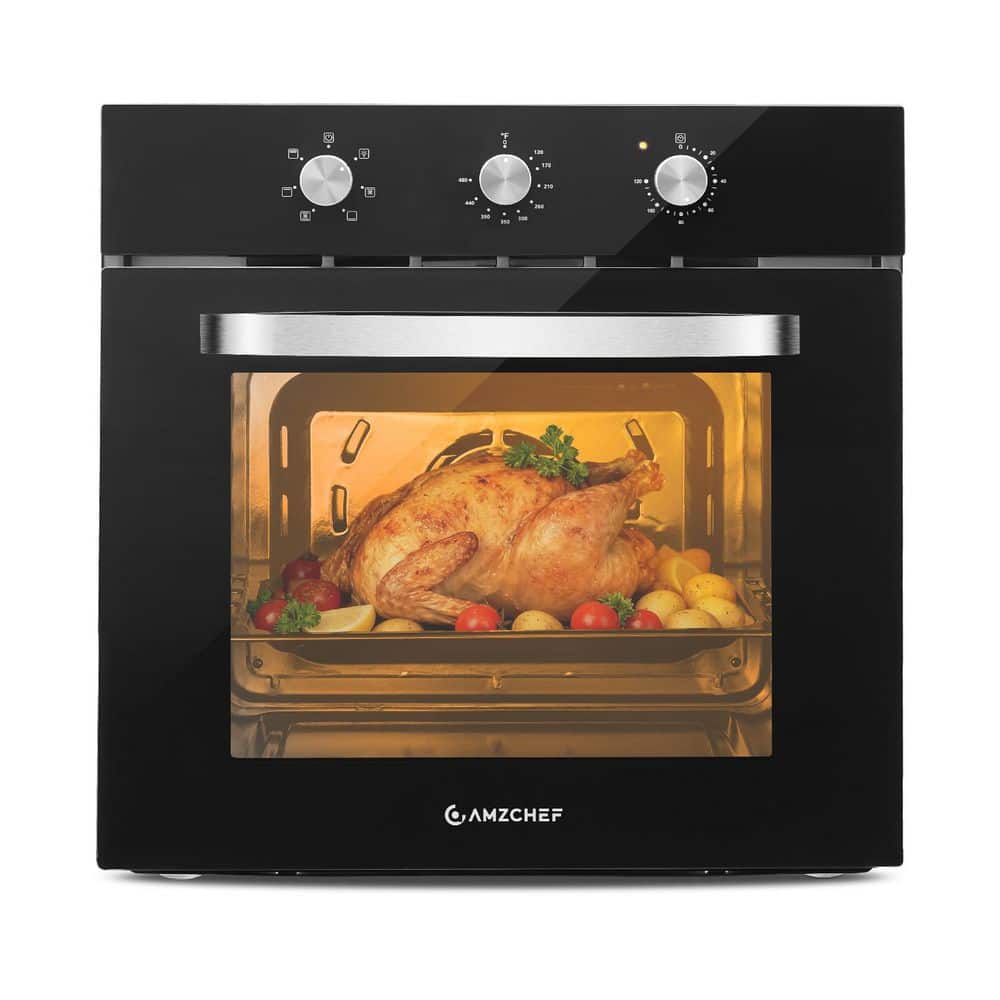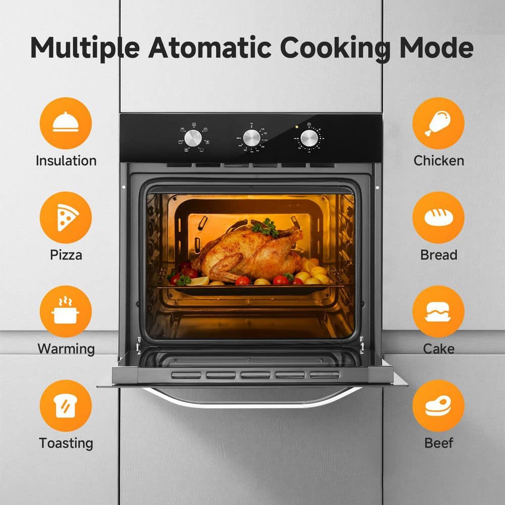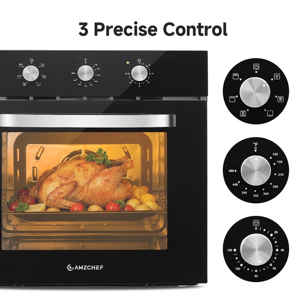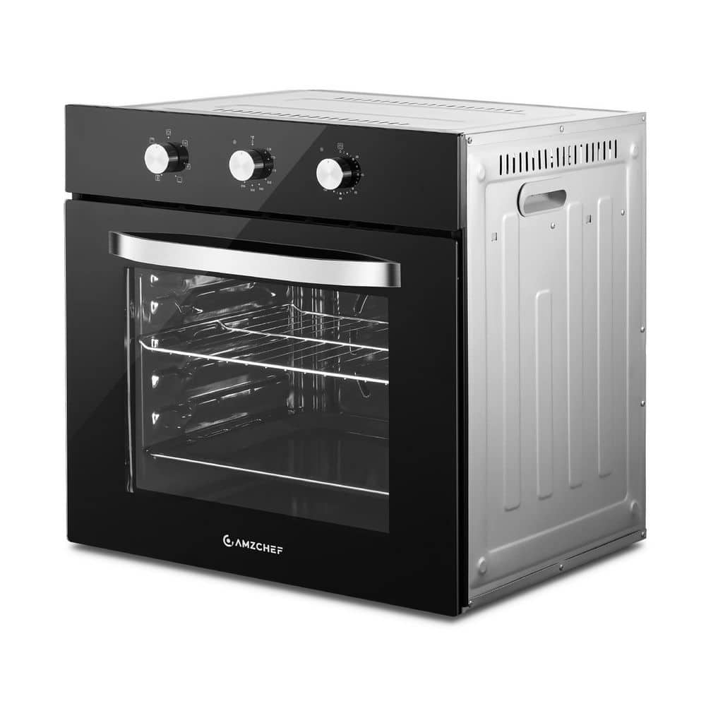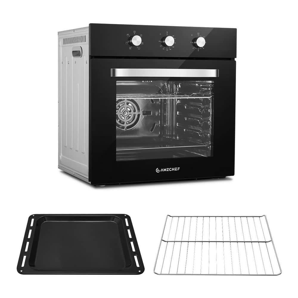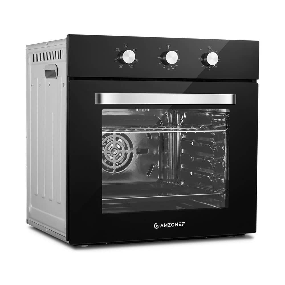 amzchef 24 in. 2.72 Cu Ft. Single Electric Wall Oven with 5 Racks, Built-in Oven for Baking, Broiling & Roasting, Timer, Black