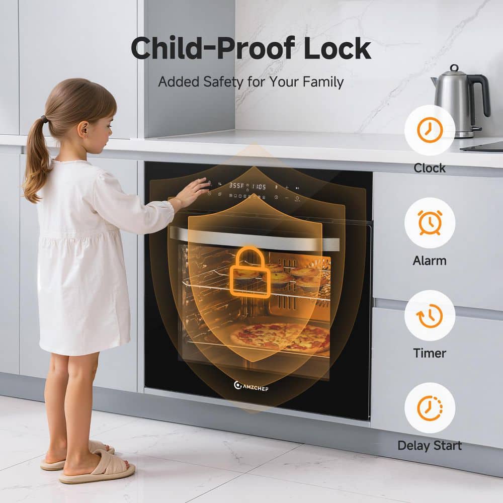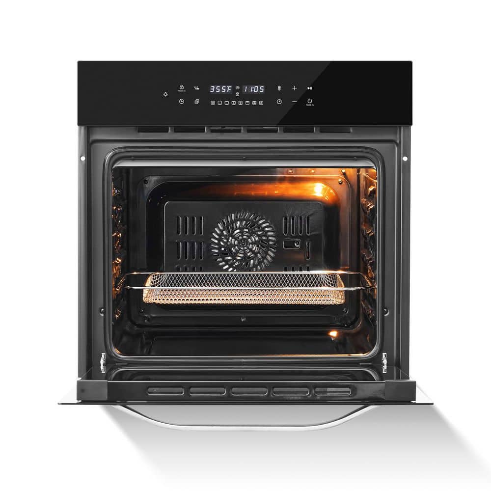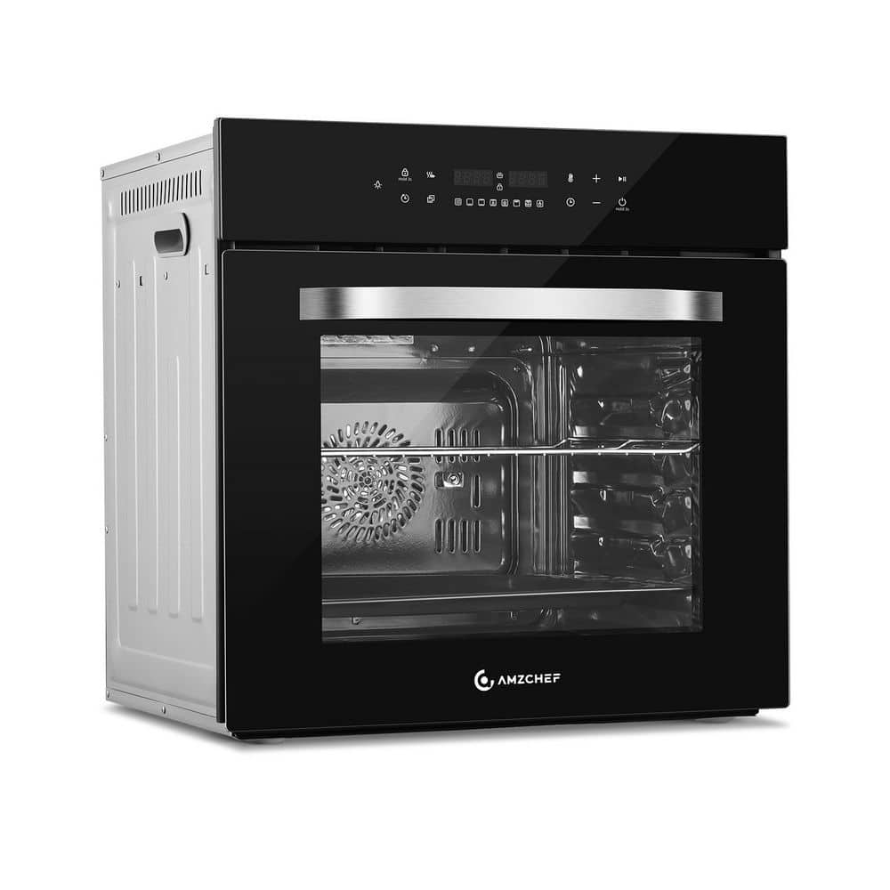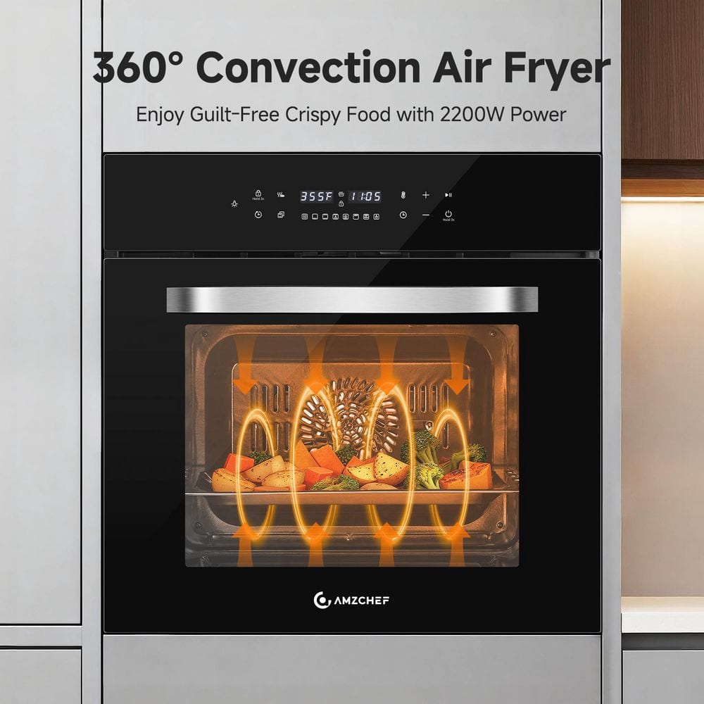 amzchef 24 in 2.72 Cu Ft. Single Wall Oven with 8 Modes,Air Fry,Lock & Timer,Convection Oven with 5 Racks,Rotisserie Kit,Black