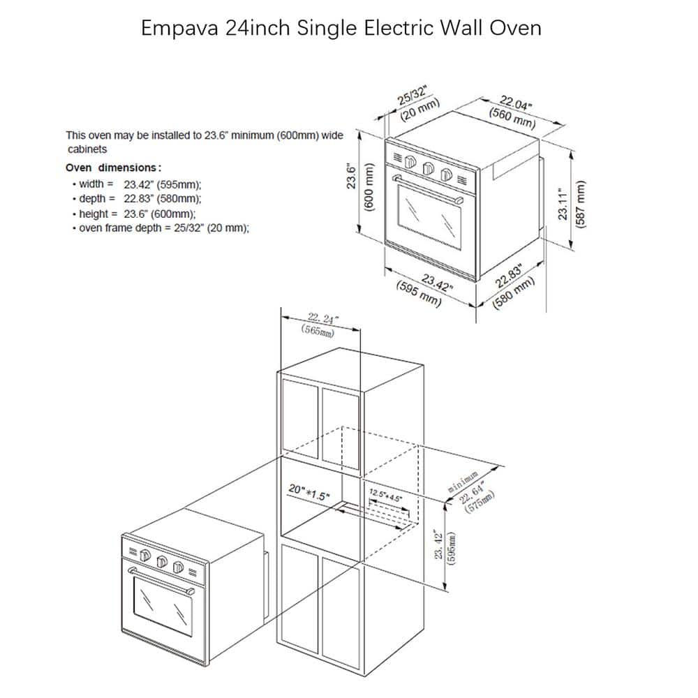 Make cooking easier with this Empava CSA-certified 24-in. single electric wall oven. It offers a generous 2.3 cu. ft. cooking capacity, grill grate, baking tray and five shelf positions for versatility. The bake, preheat, convection broil, convection roast and keep warm modes give you more cooking options. For power, it uses 240V/60Hz with a 2800-watt maximum output. To ensure safe use, three-layer tempered glass can effectively isolate high temperature steam. A black ceramic interior adds a smooth look and durability.
