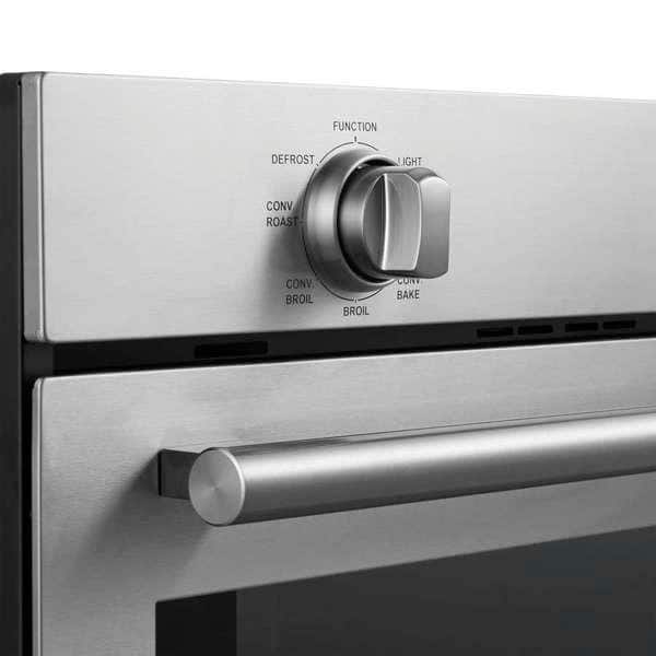 The Forno Vomero 30" Single Wall Oven is perfect for anything from intimate dinners to family gatherings. With 6 cooking functions-Bake, Conv Bake, Broil, Conv Broil, Conv Roast, and Defrost-it offers the flexibility for any dish. A 2000W broiler, 1500W bake element, and 50W convection fan ensure fast, even heating. The 5 cu. ft. capacity fits baking sheets up to 23 x 15.75 in.. The mechanical knob control panel makes adjusting settings simple, while two 25W halogen lights allow easy monitoring. The sleek stainless steel design and triple-layer window enhance safety and style. Ideal for built-in or under-cooktop installation, it features an easy-to-clean enamel interior with a hidden element. Complete with 2 chrome-plated racks and an adjustable shelf, the Forno Vomero combines convenience and performance. Backed by a 2-year in-house warranty. Lower the cost of living with Forno.