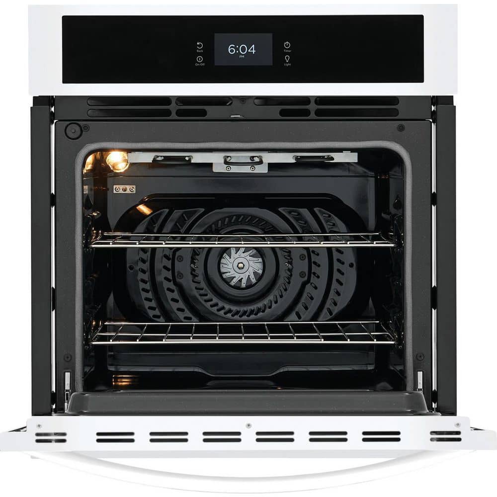 The Frigidaire 27 in. Single Wall Oven with Fan Convection allows you to achieve faster, more even multi-rack baking results. Plus, it features a premium touch screen digital control panel. Enjoy peace of mind that it will fit existing cutouts with our Frigidaire Fit Promise.