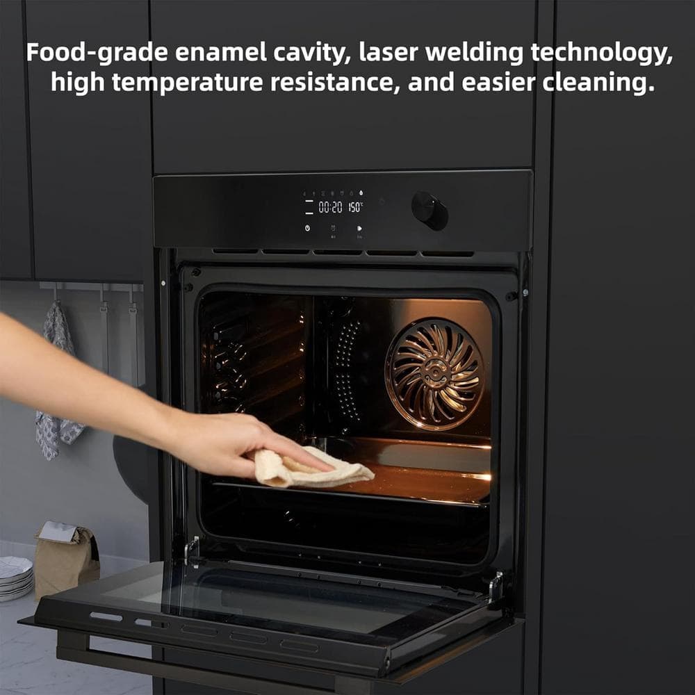 Enhance your cooking experience with our 24 in. Single Wall Oven, perfect for the modern home chef. With a spacious 2.5 cu. ft. capacity and 11 cooking modes, this built-in oven is designed to handle a variety of culinary tasks with precision and ease. Versatile Cooking Options: The 70L capacity oven supports multiple cooking functions, including baking, broiling, roasting, grilling, and double grilling. It empowers you to prepare a wide range of delicious dishes effortlessly. Uniform Heating Technology: Equipped with an advanced convection cooking system, this oven features independent upper and lower heating tubes and a rear fan that circulates hot air, ensuring consistent and even cooking for all meals. User-Friendly Controls: Navigate cooking settings easily with the innovative touch button operation and digital display. The intuitive interface allows for quick adjustments to temperature and cooking modes, making cooking seamless. Durability and Safety: Constructed with a food-grade enamel inner cavity and laser-welded design, this oven is built for long-lasting use. Bright interior lighting and a triple-pane tempered glass door ensure safety and visibility while cooking. Perfect Kitchen Addition: Measuring 23.4 in. x 23.4 in. x 22.6 in. , this 24 in. electric wall oven is designed to fit seamlessly into your kitchen space, offering a sleek and practical solution that meets all your cooking needs.