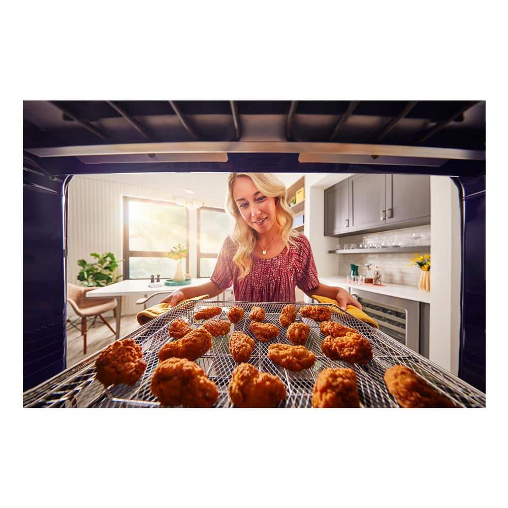 Crisp and brown with less oil and less hassle. KitchenAid Single Wall Ovens with Air Fry Mode include a dishwasher-safe air fry basket with plenty of capacity for large batches. A built-in thermometer takes the guesswork out of cooking meat, fish, poultry, casseroles and more to the perfect degree of doneness every time. When compared to deep frying.